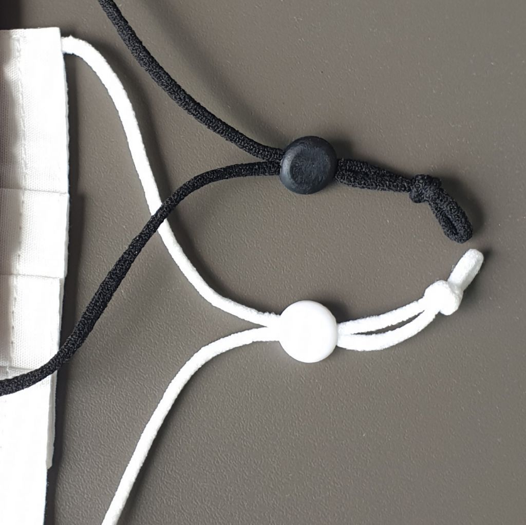 Clip de serrage sur les élastiques afin d'ajuster au mieux derrière les oreilles.