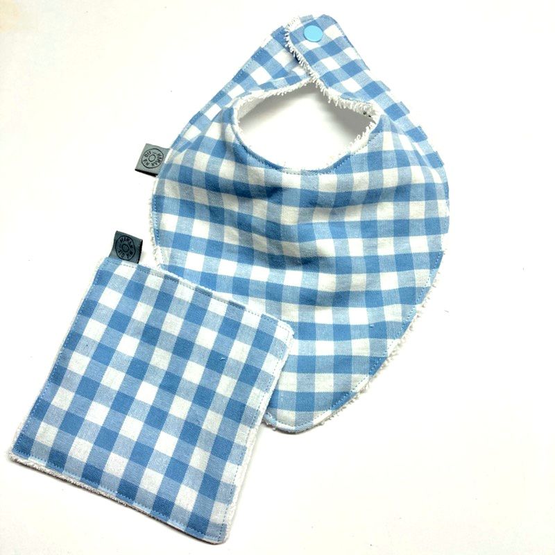 • Bavoir bandana vichy rose et éponge bambou (40% coton 40% viscose 20% polyester), fermeture par pression,  lavable en machine à 40°.