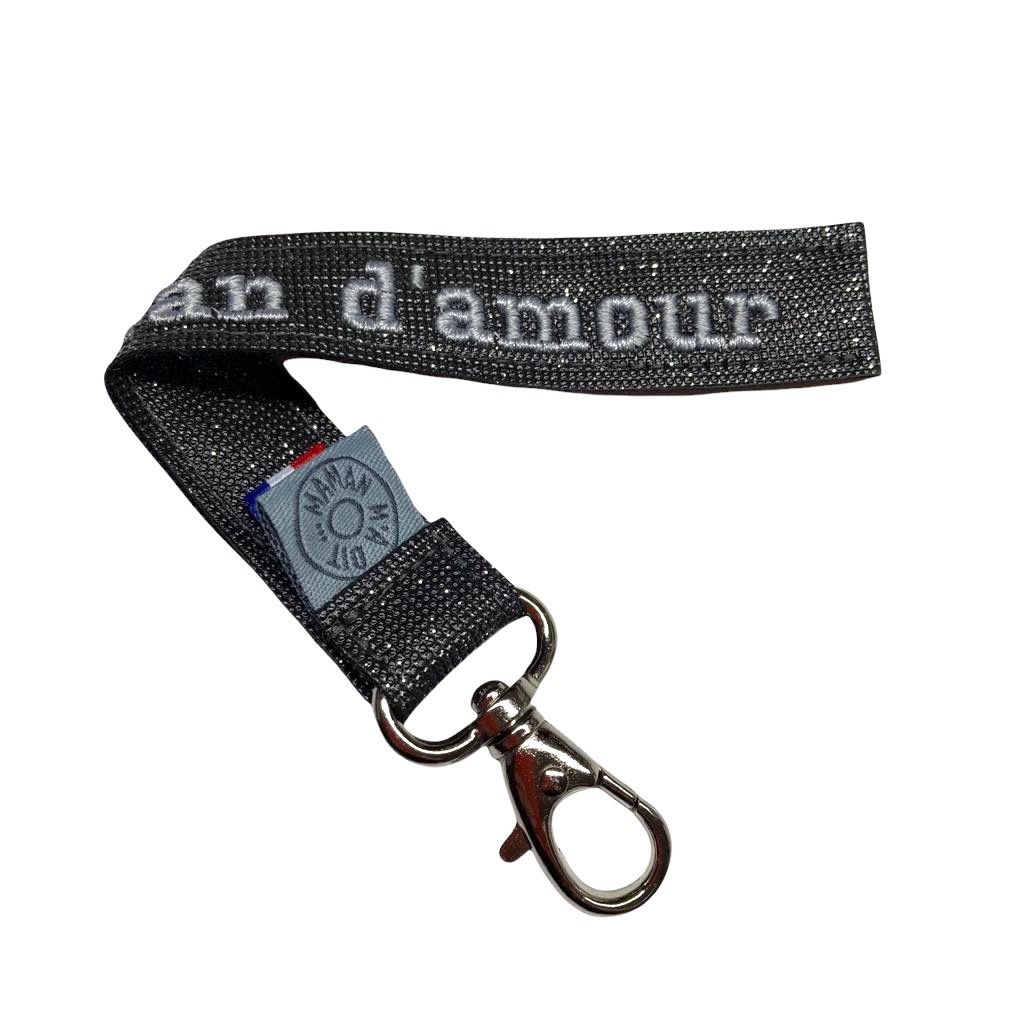 Porte clé brodé Maman d'amour noir pailleté