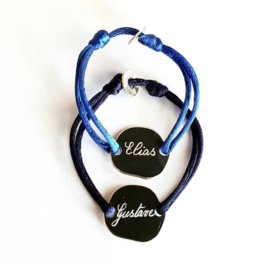 Bracelets ajustables grâce aux noeuds coulissants. Bracelets livrés dans un sachet Maman m'a dit..., pochette cadeau et chamoisine en option.