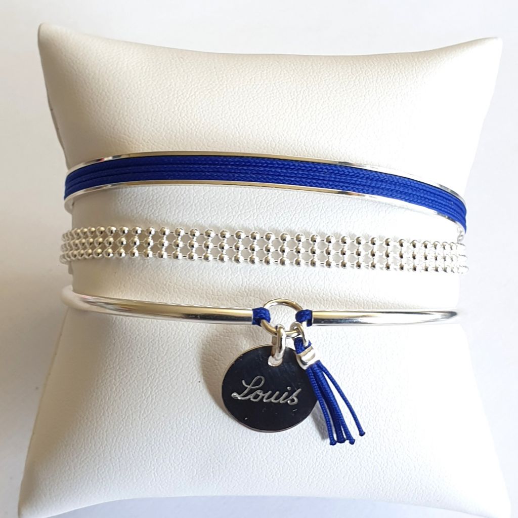 composition de 3 bracelets : 1 demi jonc (nouveaux de 2025 plus épais et plus résistants), medaille 15 mm 1 bracelet perles 18 cm de long 1 jonc tissé