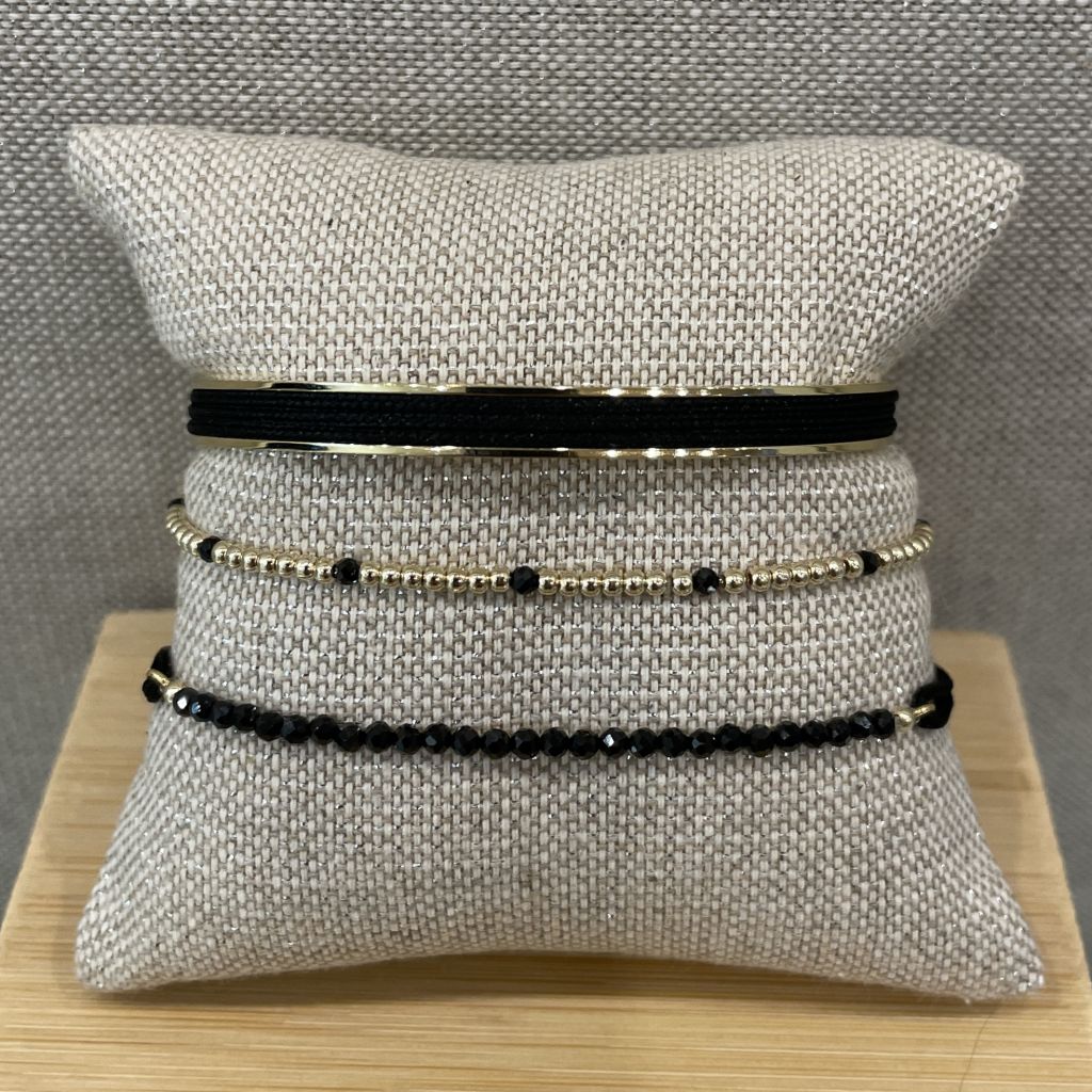 Jonc Made in France tissé, possibilité de changer par la suite votre cordon. Bracelet perles élastiques en perles naturelles. Celui du bas est monte sur cordon polyester finition 1 noeud coulissant 2 perles