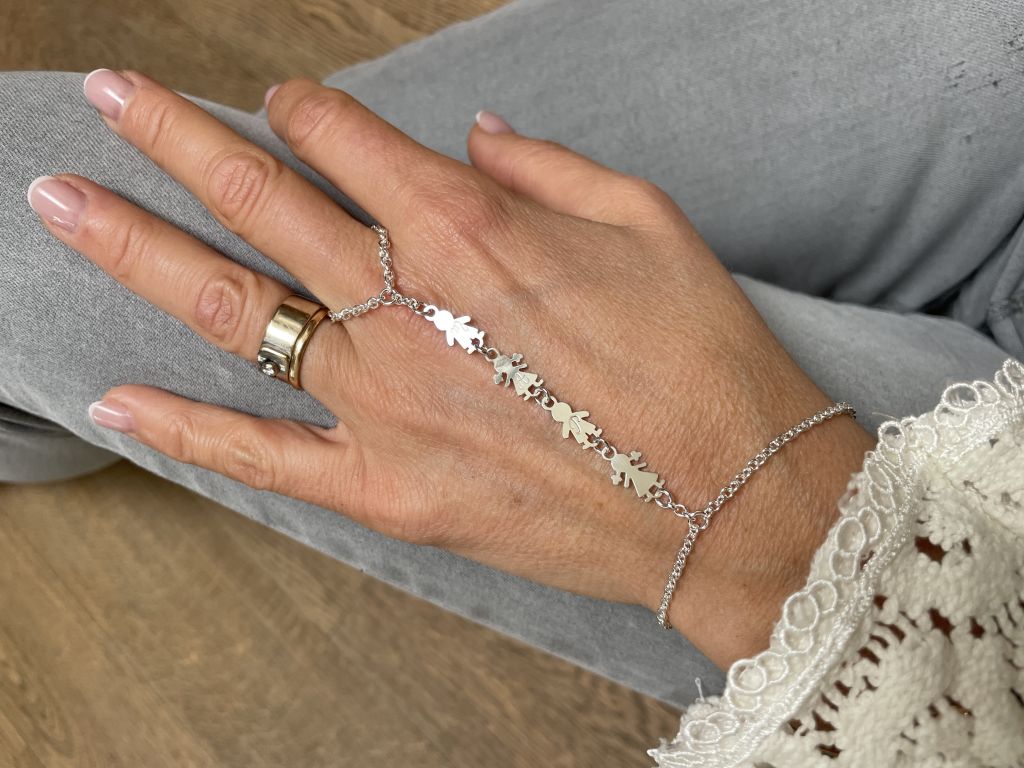 Bague bracelet avec mini personnage en argent massif. Le prix correspond à un personnage, en option vous pouvez en ajouter, le prix tient compte des soudures nécessaires