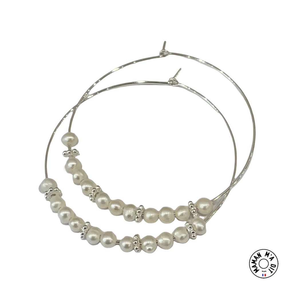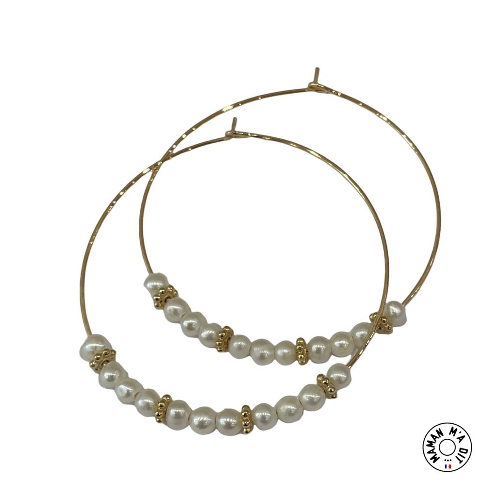 Créoles 45 mm en argent ou en plaque or perles de culture et perles marguerites