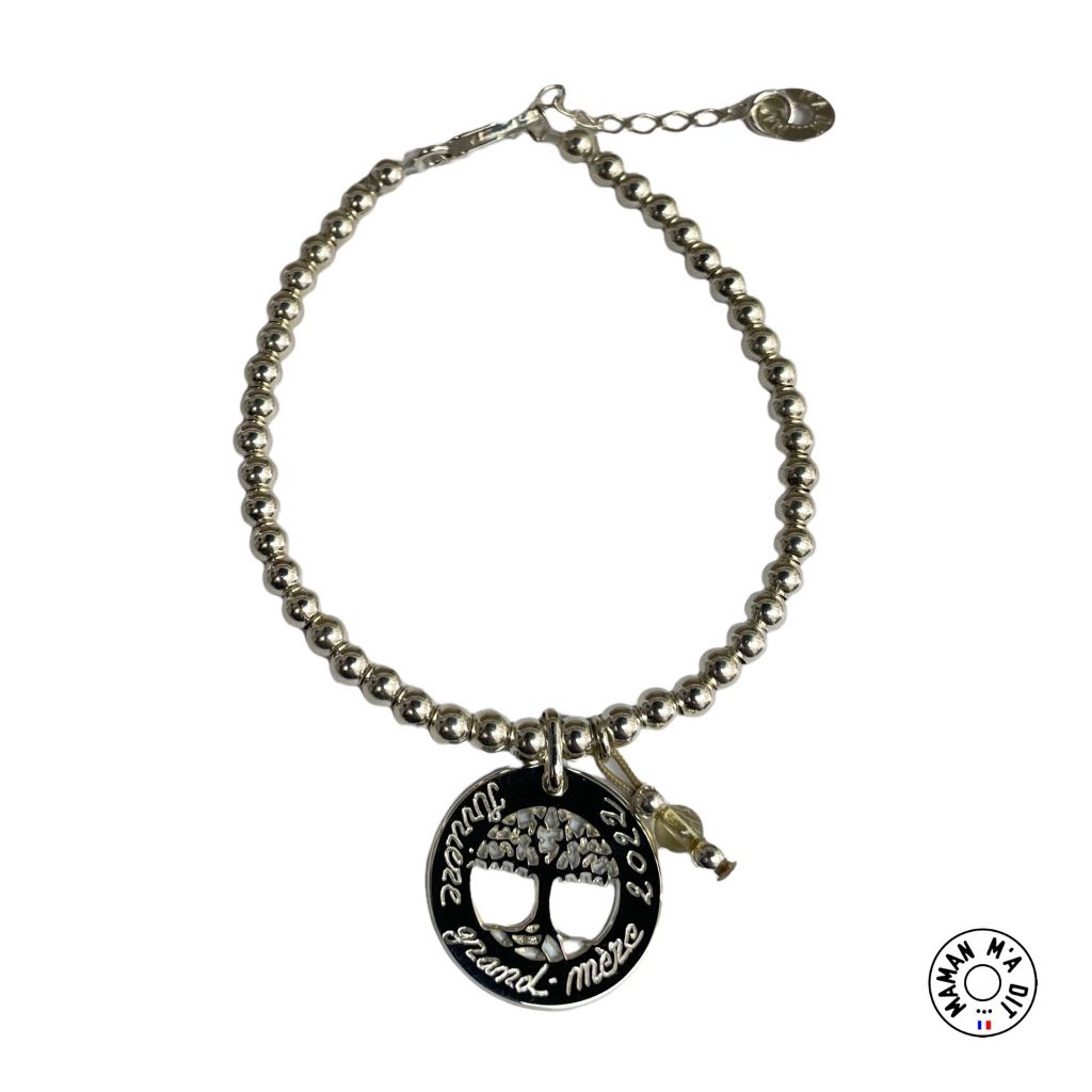 Bracelet perles 4 mm et arbre de vie 20 mm gravable et pompon (couleur au choix)