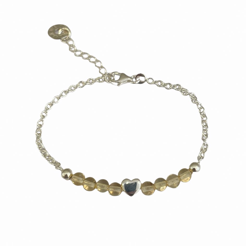 Bracelet chaîne mini coeur et perles citrine. Disponible en argent ou en plaqué or. La citrine a de nombreuses vertus :