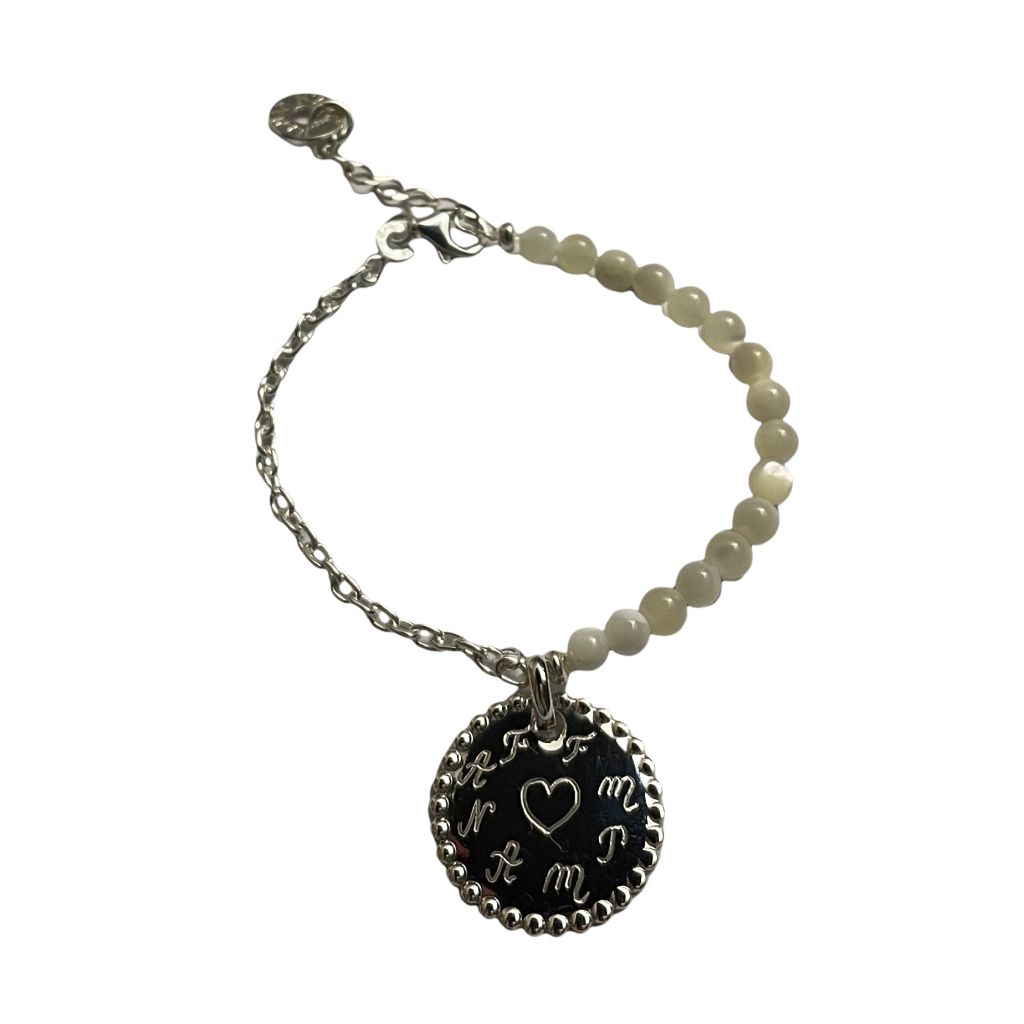 Bracelet 1 pendentif argent perlé et bombé (concave au dos) monté sur bracelet perles de nacre et chaîne forçat