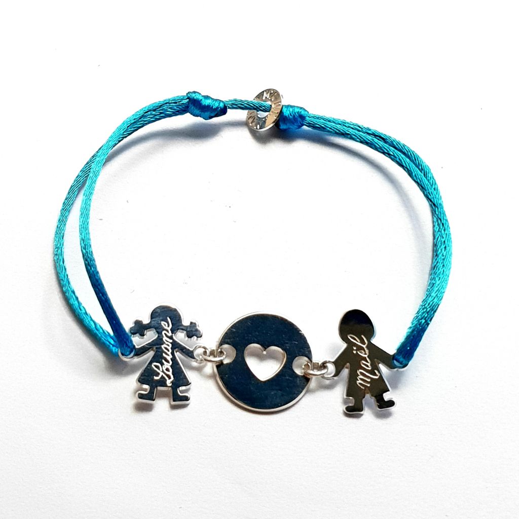 Bracelet avec des personnages et coeur 15 mm fabriqués en France. Possibilité d'ajouter des personnages, le prix tient compte de la soudure nécessaire entre les personnages.