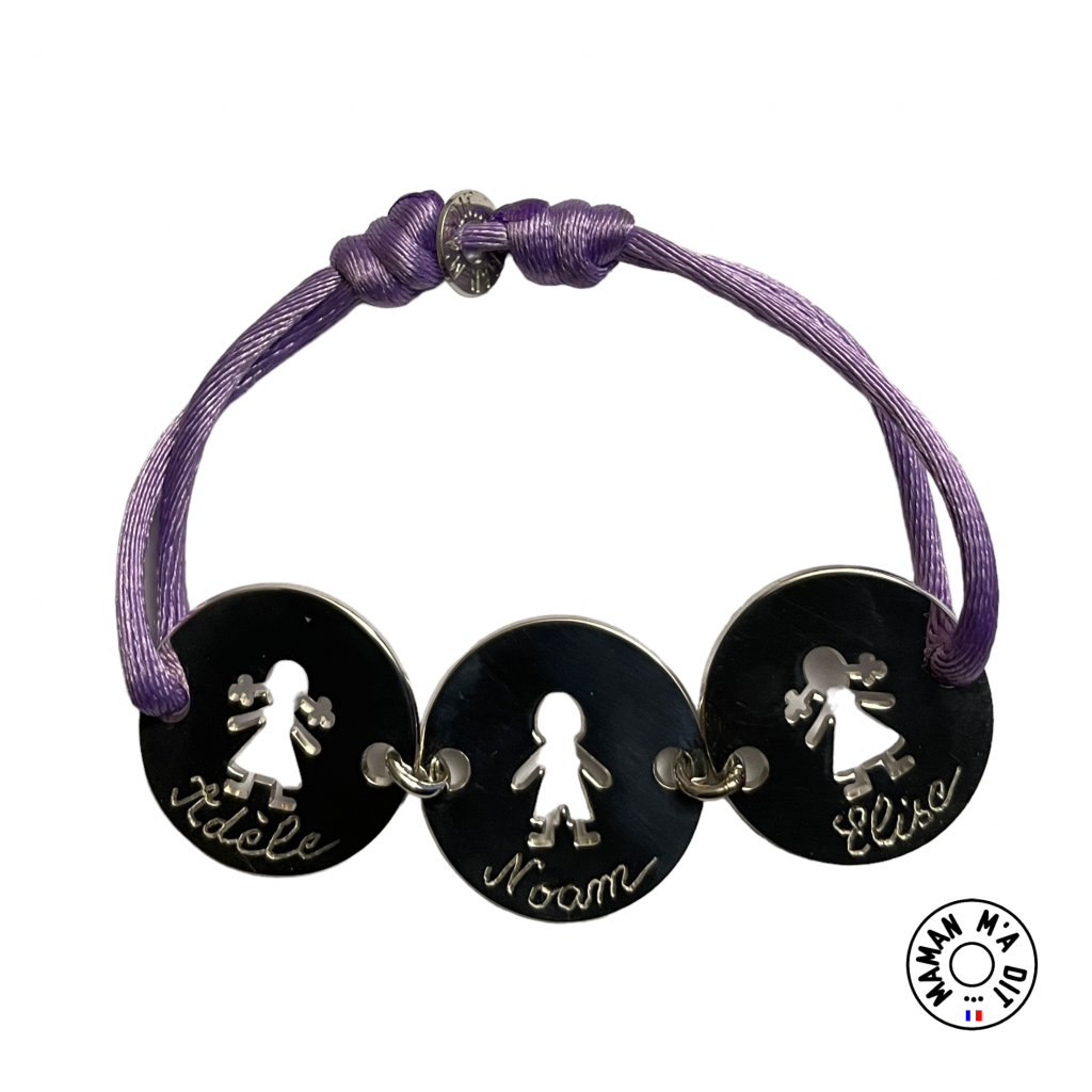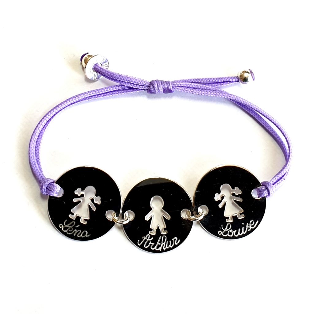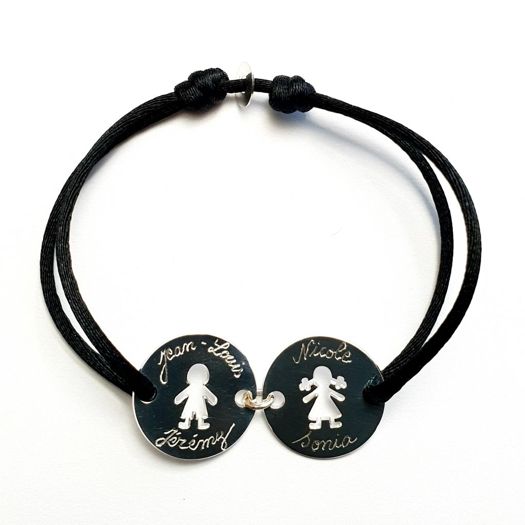 Bracelet avec petites filles ou garçons 20 mm fabriqués en France.. Possibilité d'ajouter des personnages, le prix tient compte de la soudure nécessaire entre les personnages. En option, choisissez la finition 1 noeud coulissant 2 perles, parfaite pour enlever et remettre facilement votre bracelet. Le cordon en polyester ne bouge pas, vous pouvez si vous le souhaitez vous laver et dormir avec.