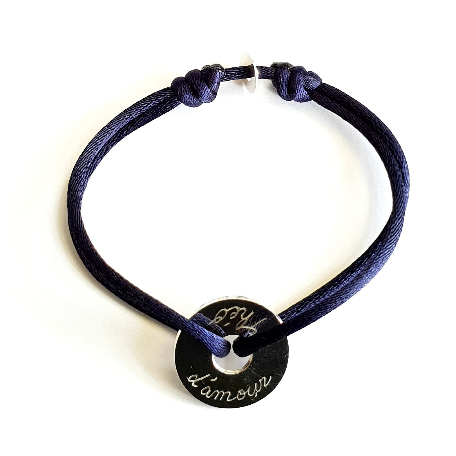 Bracelet cible ronde 20 mm fabriquée en France à monter sur cordon. Je peux vous graver des prénoms au recto et une date au verso.