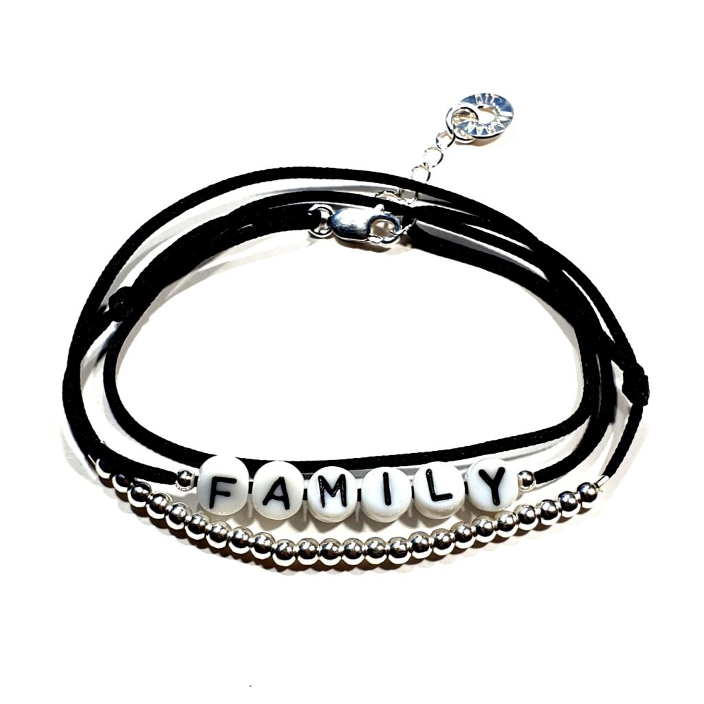 Bracelet perles en argent sur 3 tours, fermeture par mousqueton ajustable. Merci de m'indiquer dans la gravure le mot ou le prénom que vous souhaitez