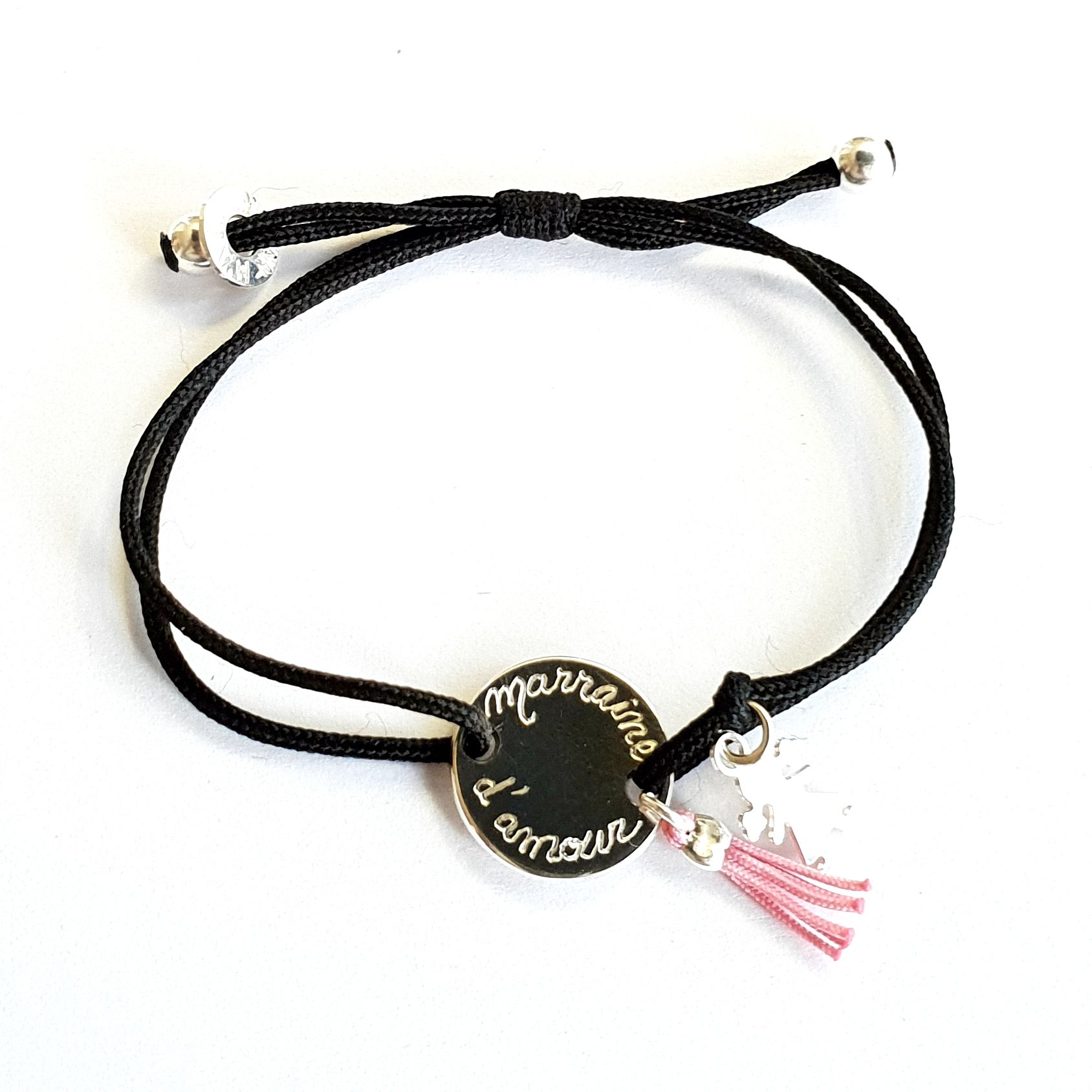 Bracelet marraine d'amour jeton 15 mm Gravure au choix Possibilité d'ajouter des mini médailles, le prix tient compte de la perle séparatrice.