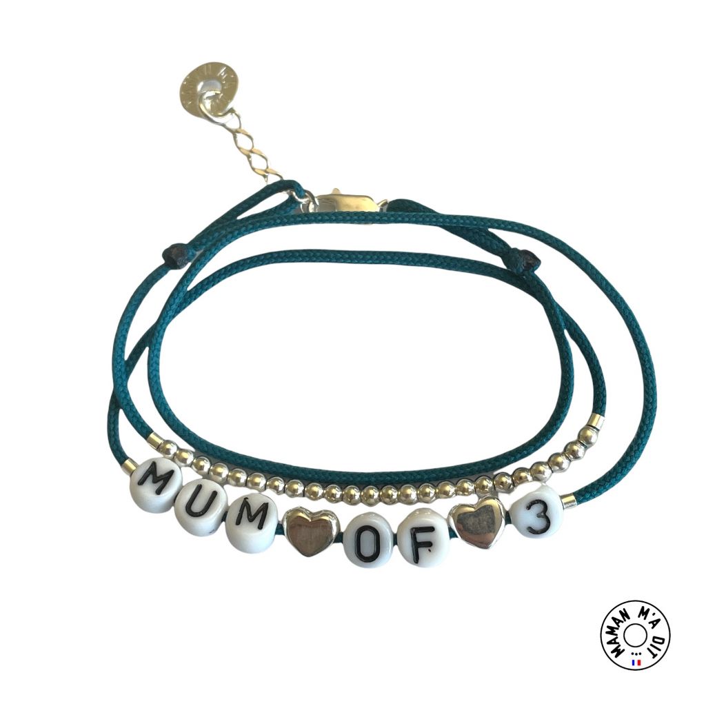 Bracelet MUM OF avec deux petits coeurs en argent, merci de m'indiquer le nombre d'enfants que vous avez s'il vous plait.