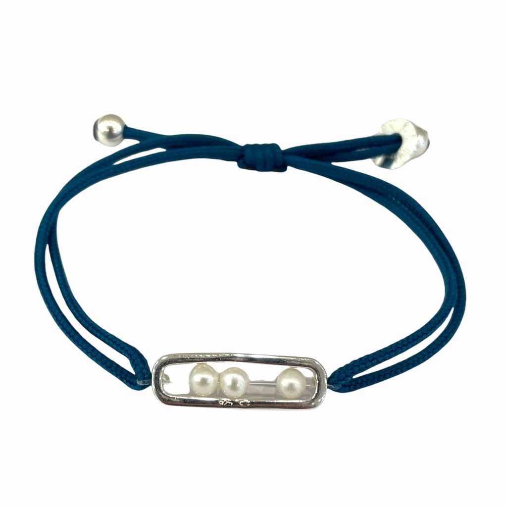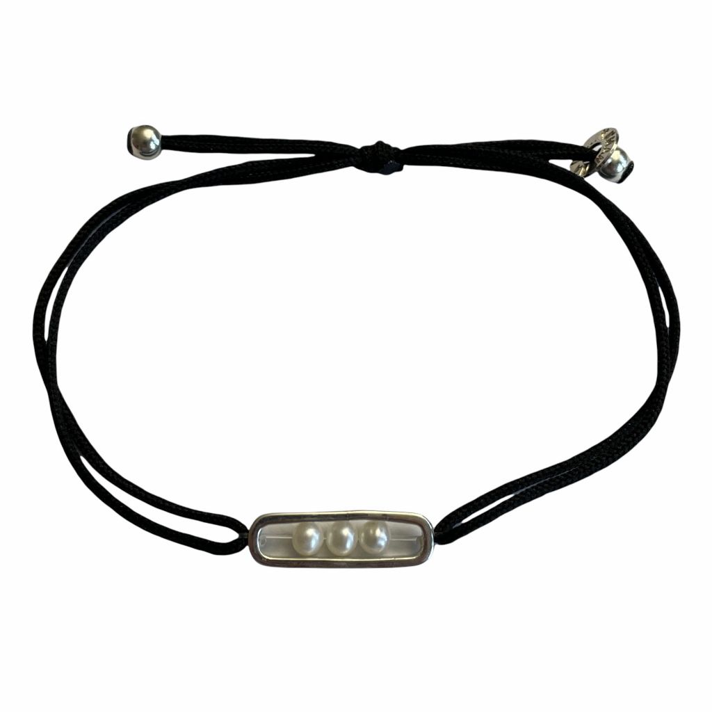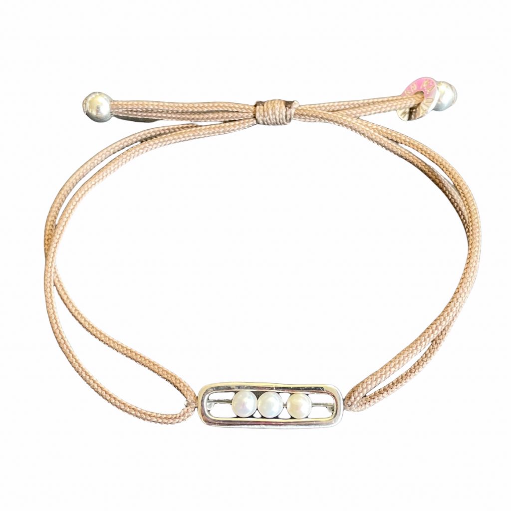Bracelet 3 perles de culture 3 mm dans maillon argent massif (rupture de stock provisoir en plaqué or) Montage sur cordon polyester 1 nœud coulissant et 2 perles.