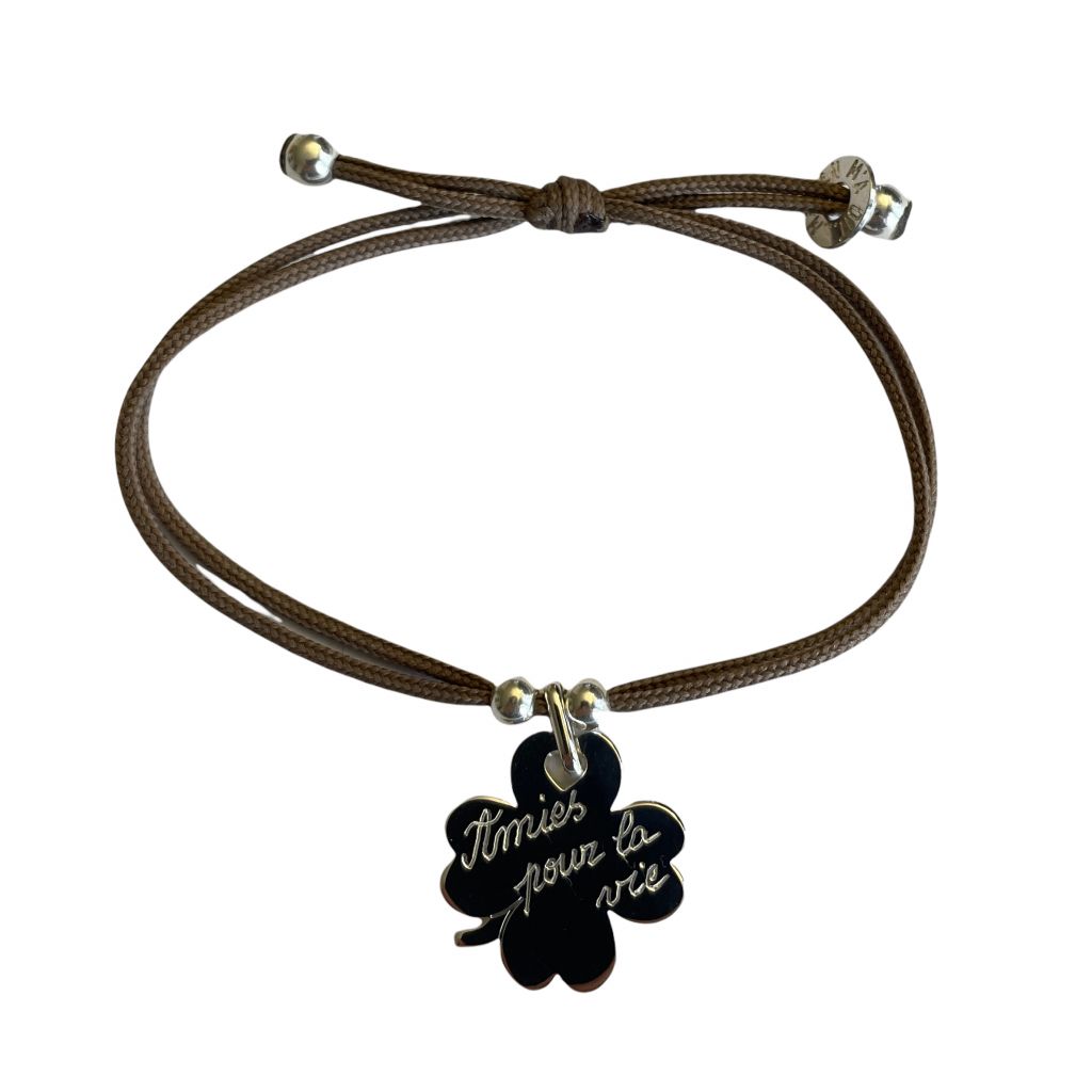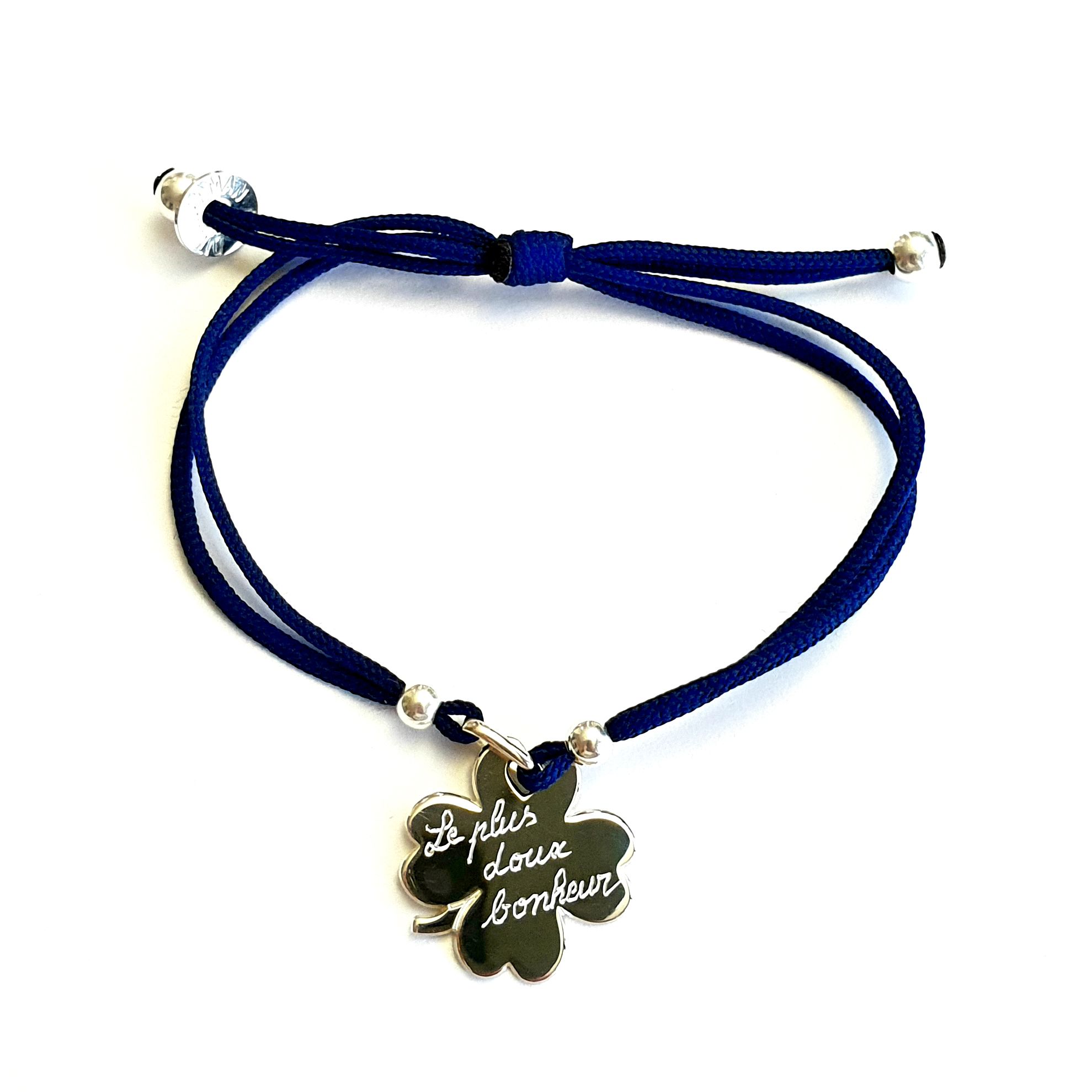 Bracelet trèfle 21 mm fabriqué en France, finition 1 noeud coulissant deux perles, très pratique pour mettre et retirer votre bracelet.