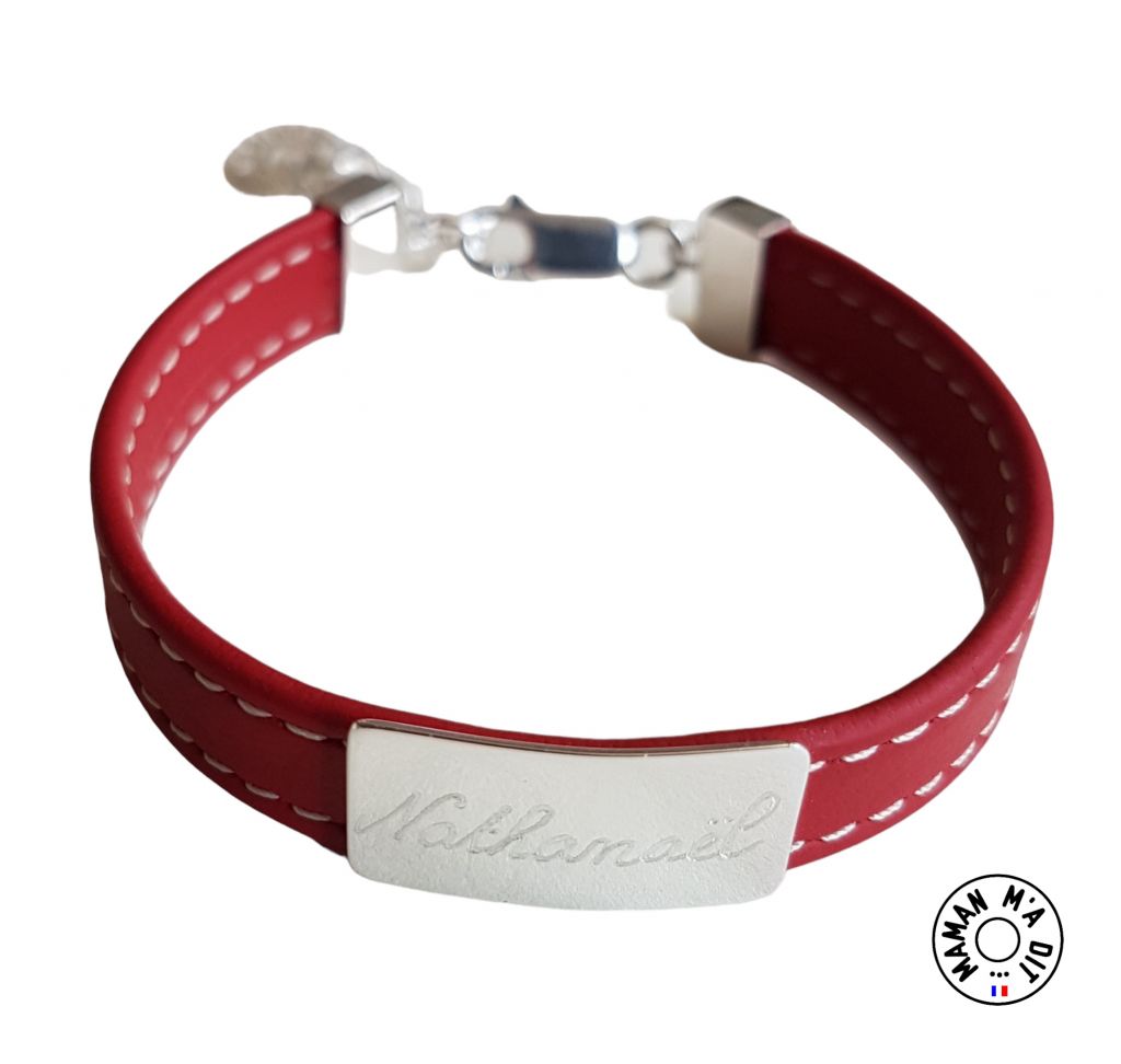 Bracelet cuir, clip vierge gravure au choix, fermeture par mousqueton ajustable