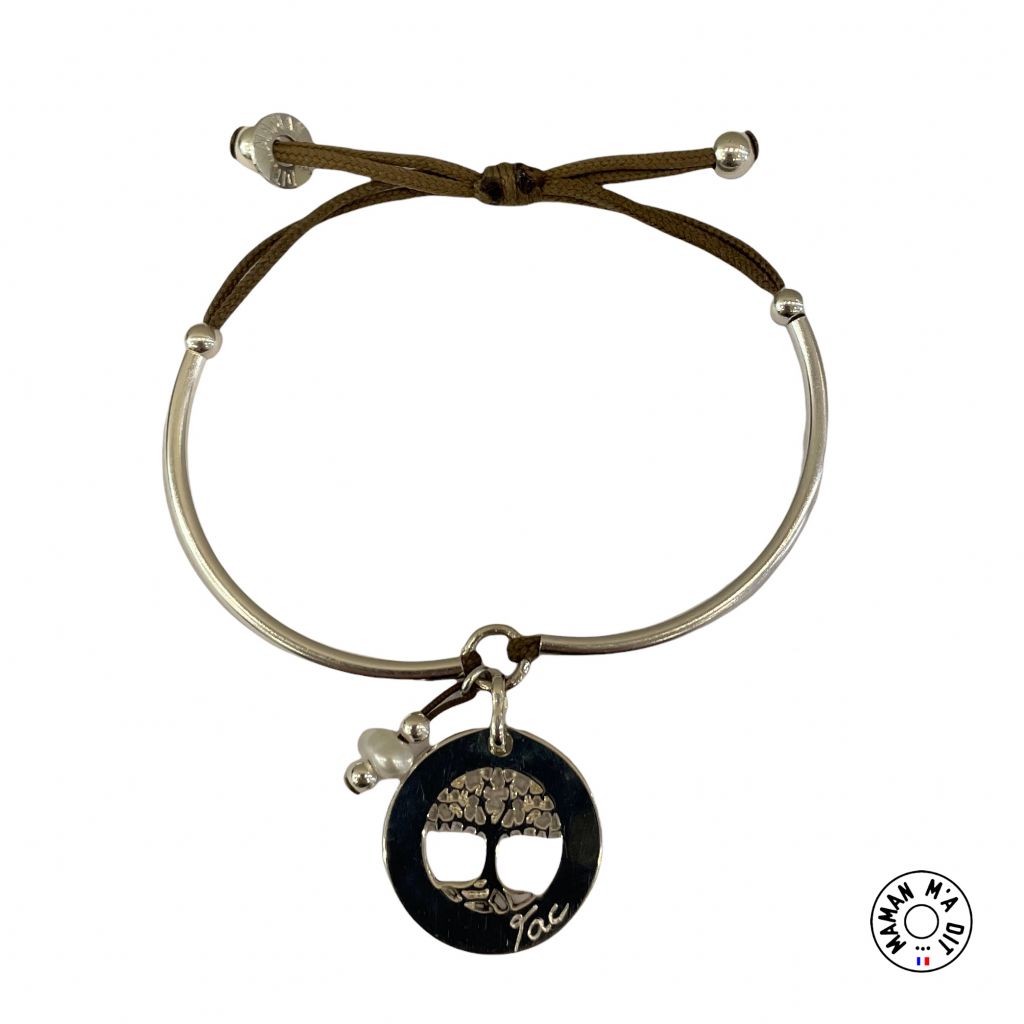 Bracelet demi jonc (nouveaux de 2025 plus épais et plus résistants) arbre de vie 20 mm en argent et pompon perle de culture