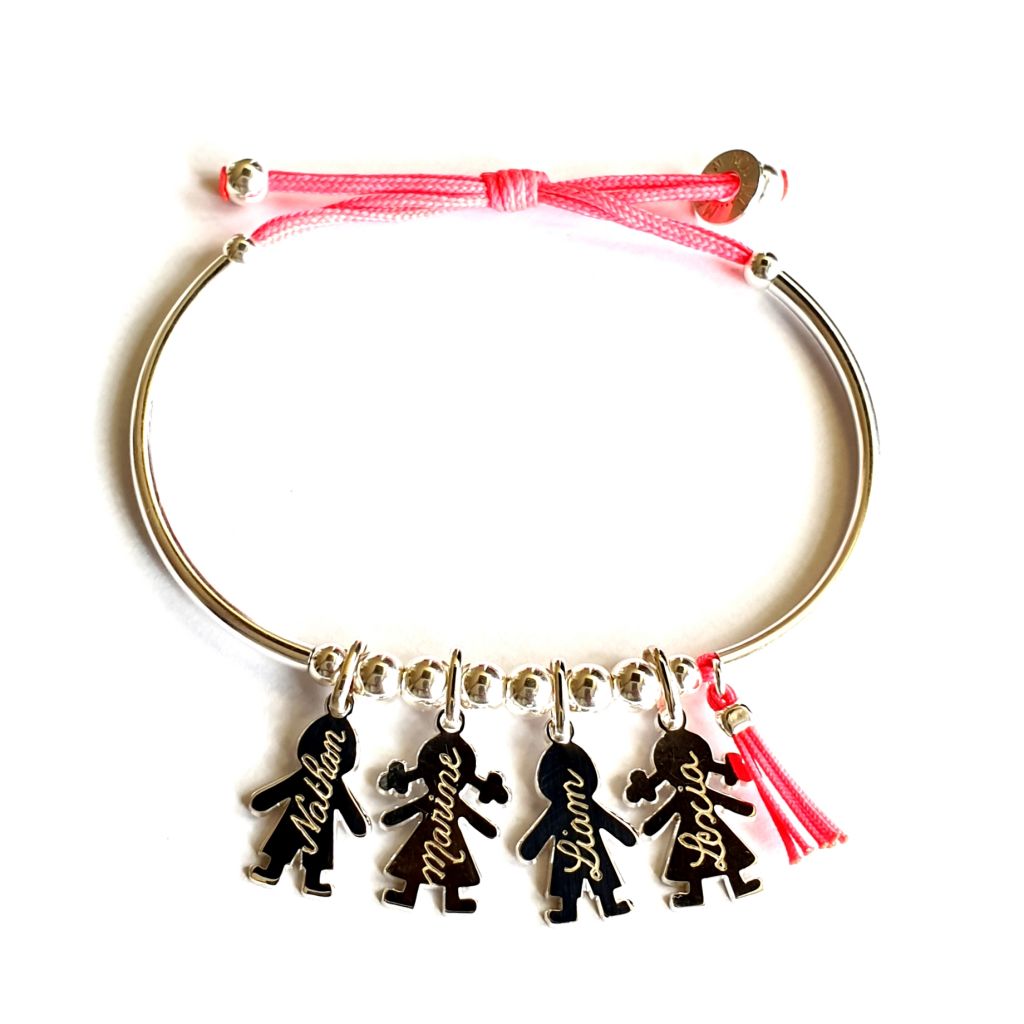 Bracelet 3 à 4 personnages 15 mm, monté sur 2 demi joncs (nouveaux de 2025 plus épais et plus résistants). Ce bracelet s'adapte à tous les poignets car il est sur mesure.