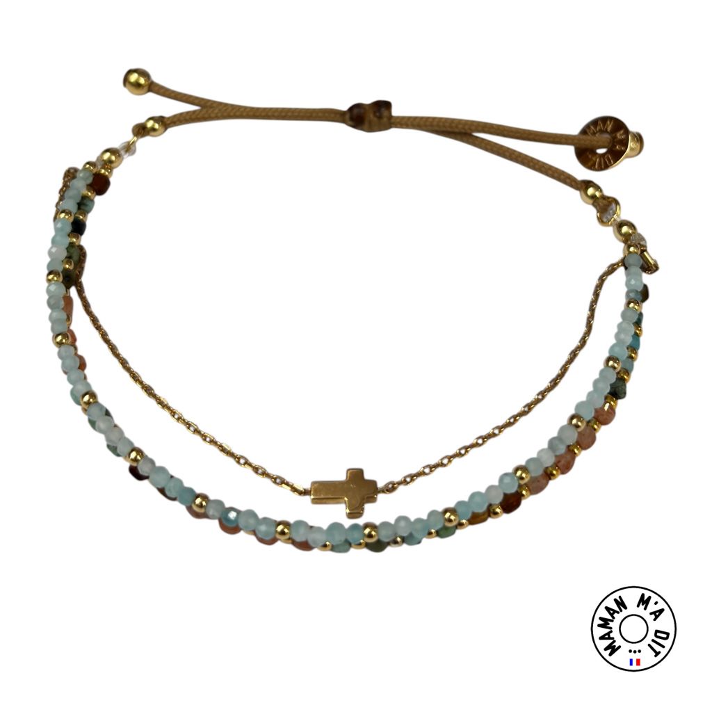 Bracelet perles 3 en 1, mini croix. Couleurs aléatoires mais on reste dans les mêmes tons Montage sur cordon polyester 1 nœud coulissant et 2 perles.