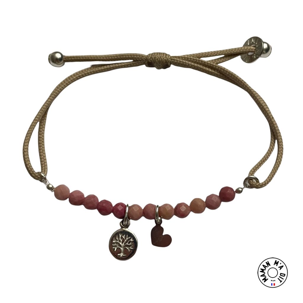 2 minis au choix et perles rhodonite. Montage sur cordon polyester (couleur au choix) 1 nœud coulissant et perles argent ou plaque or .