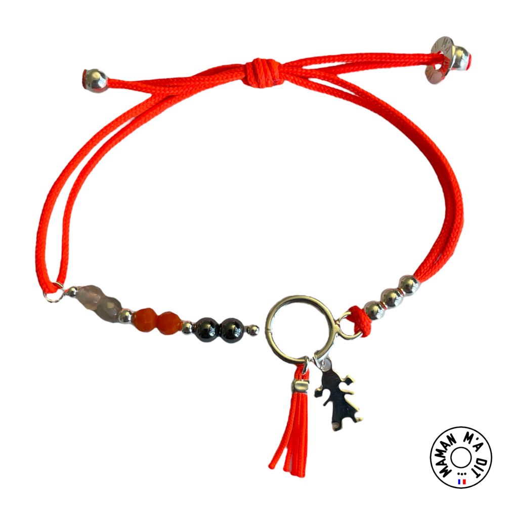 Bracelet perles et une mini médaille au choix en argent massif 1 pompon coordonné à la couleur du cordon Montage sur cordon polyester 1 nœud coulissant et 2 perles.
