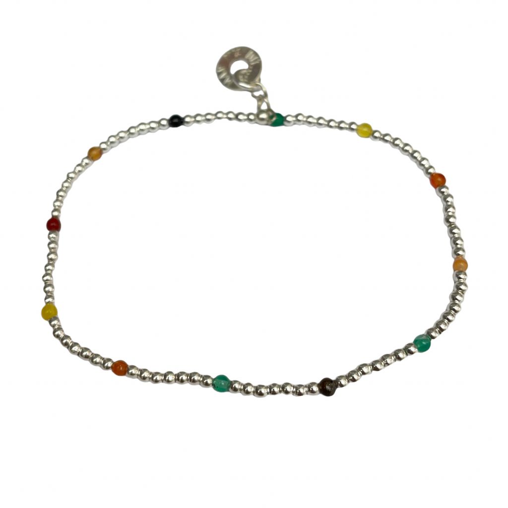 Bracelet perles 2 mm en argent et agates multicolores. Montage sur cordon élastique très résistants.