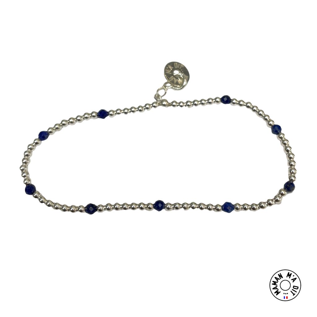 Bracelet perles 2 mm en argent ou plaqué or et Lapiz Lazuli. Montage sur cordon élastique très résistants.