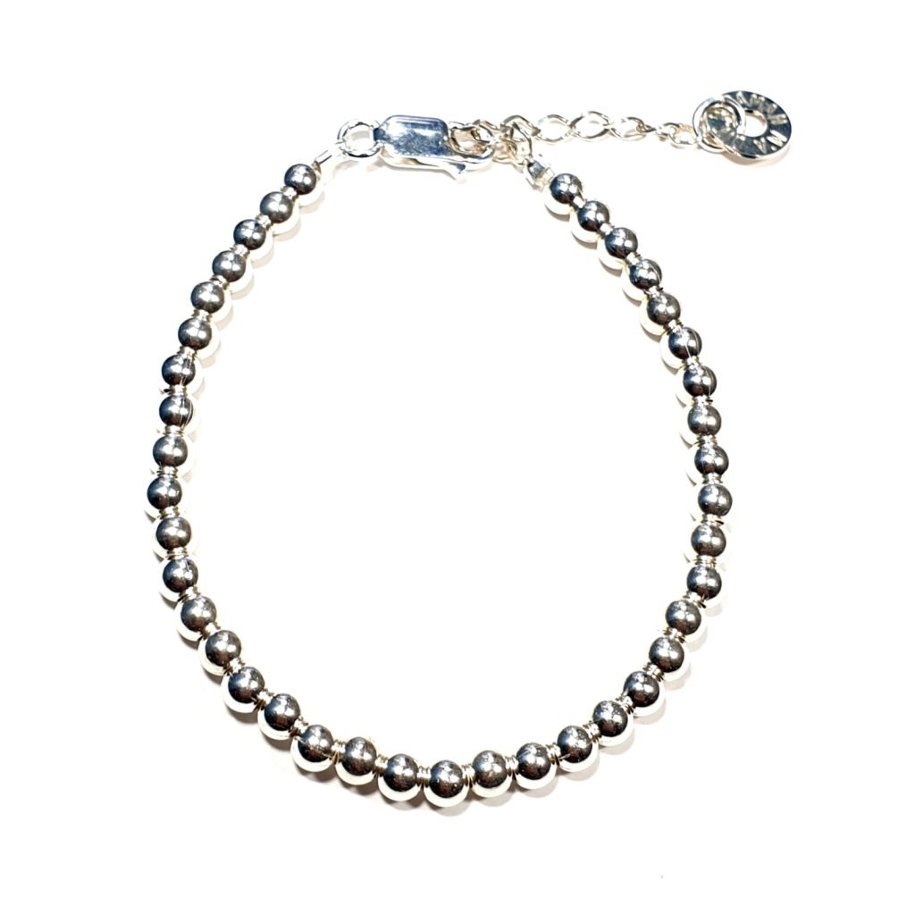Bracelet perles 4 mm en argent ou plaqué or. Fermeture mousqueton ajustable.