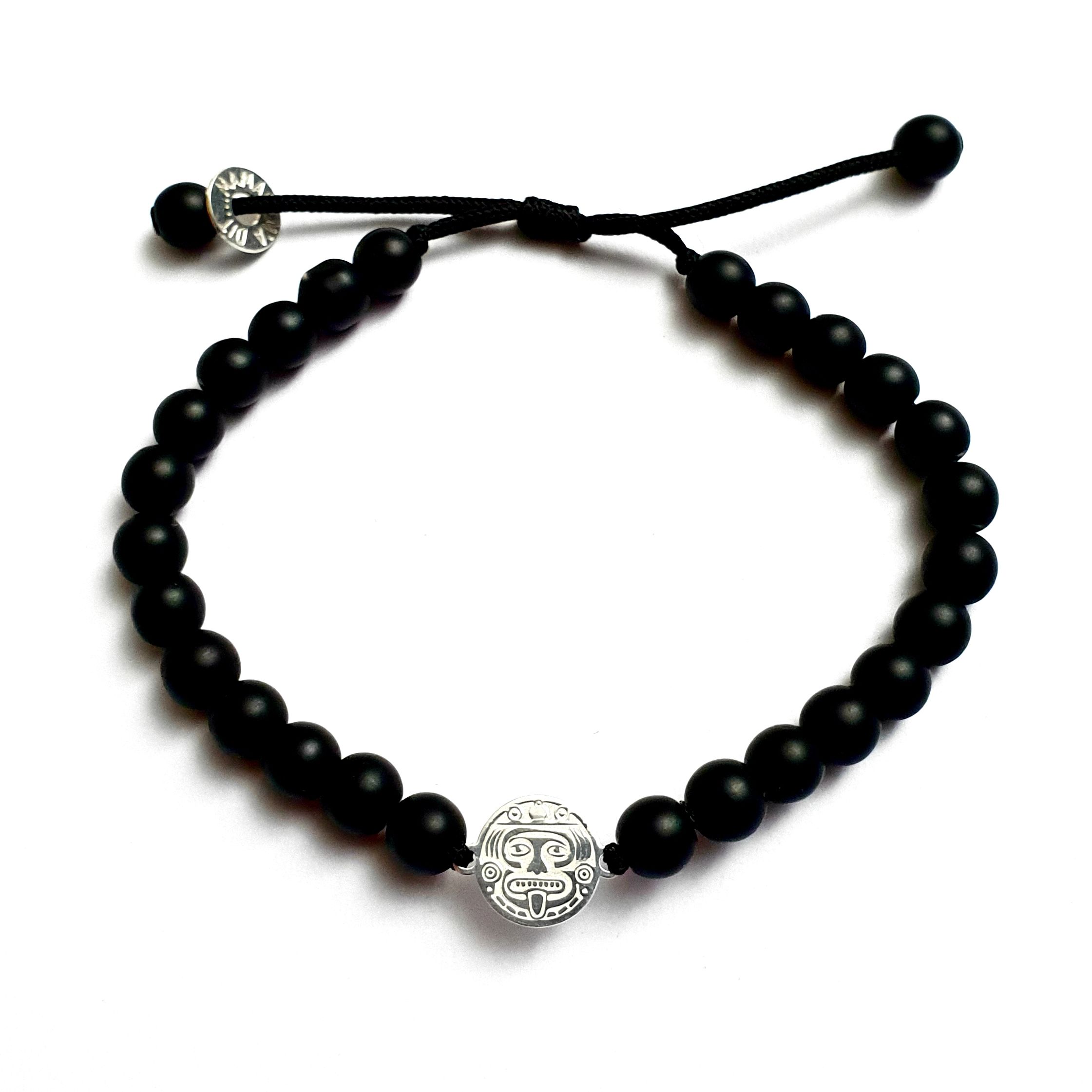 Bracelet perles 6 mm en agate noire. Montage sur cordon polyester 1 nœud coulissant et 2 perles Totem 8 mm non gravable