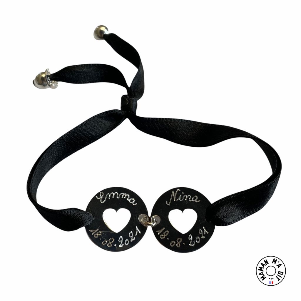 Bracelet 2 coeurs 20 mm montés sur ruban satiné. Possibilité d'ajouter d'autres coeurs