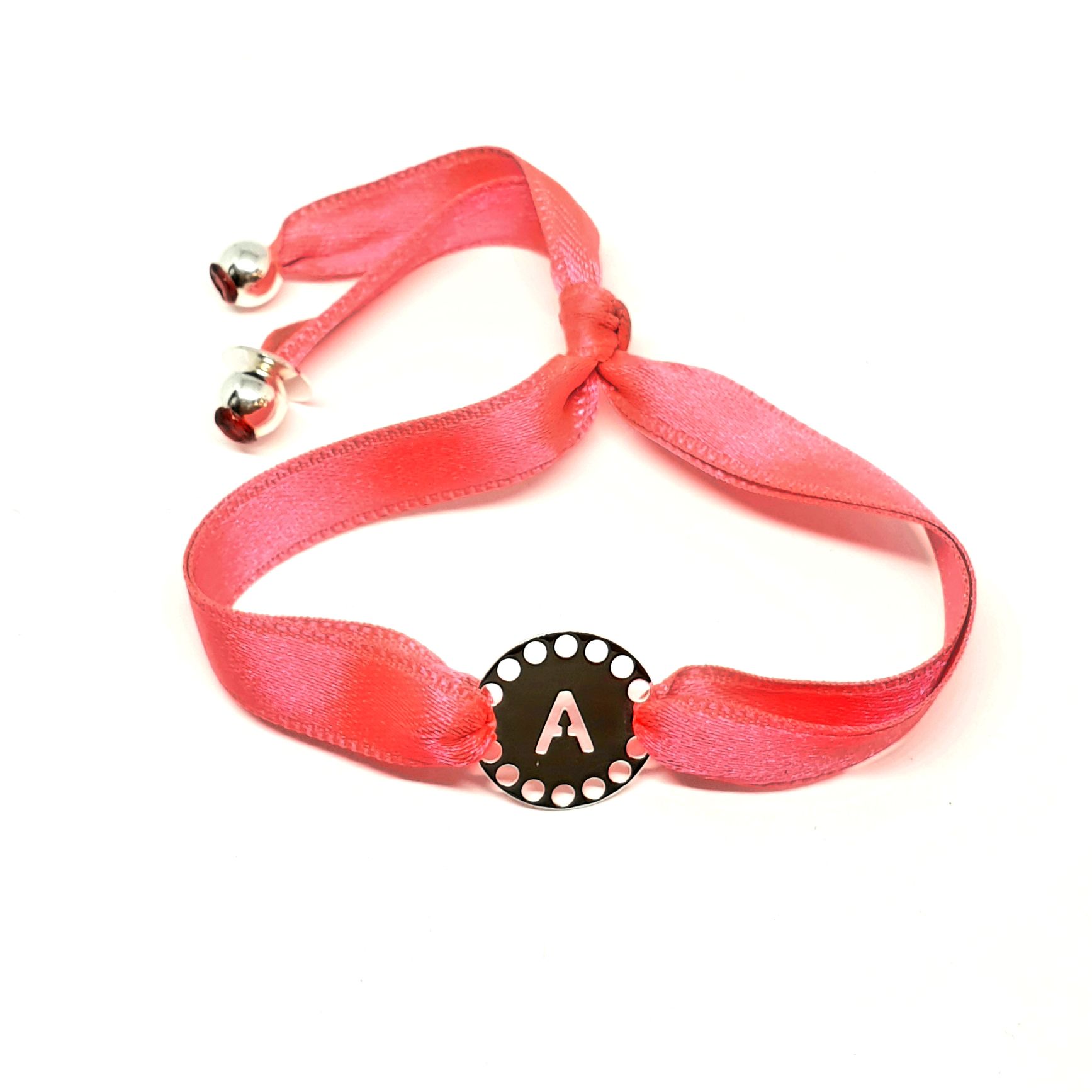 Bracelet cible ronde 14 mm avec lettre ajourée au choix. Ce bracelet n'est pas gravable