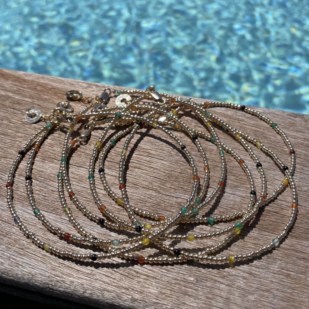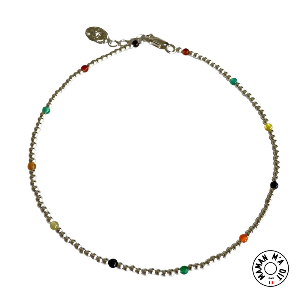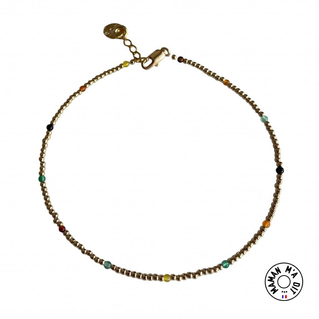 • Chevillère perles 2 mm et perles naturelles au choix (sur les exemples les perles sont des agates multicolores)