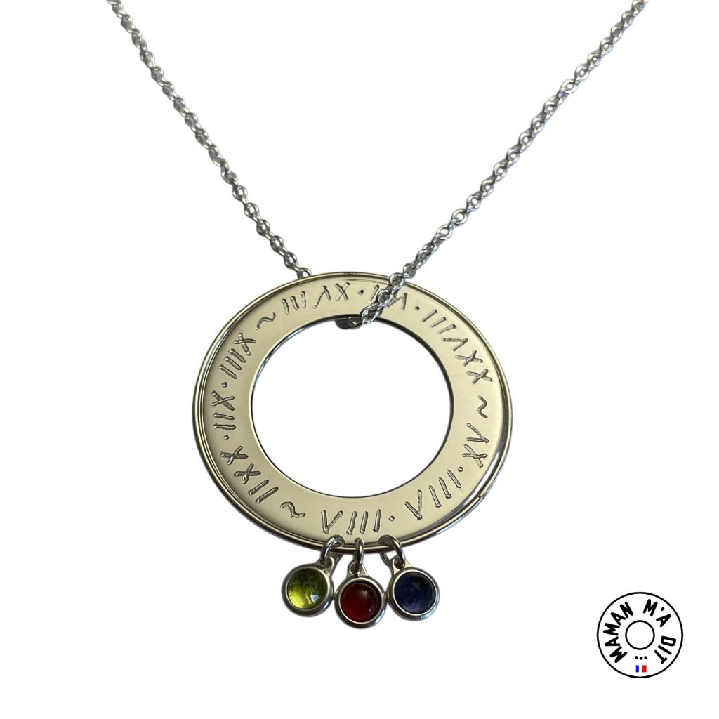 Collier cible et 3 pierres de naissance .
