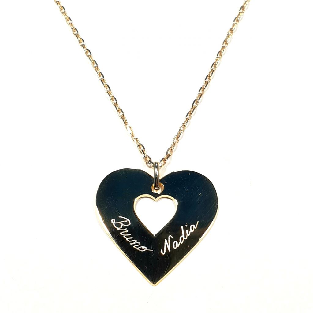 Collier médaille coeur 37 mm montée sur chaîne 45 cm