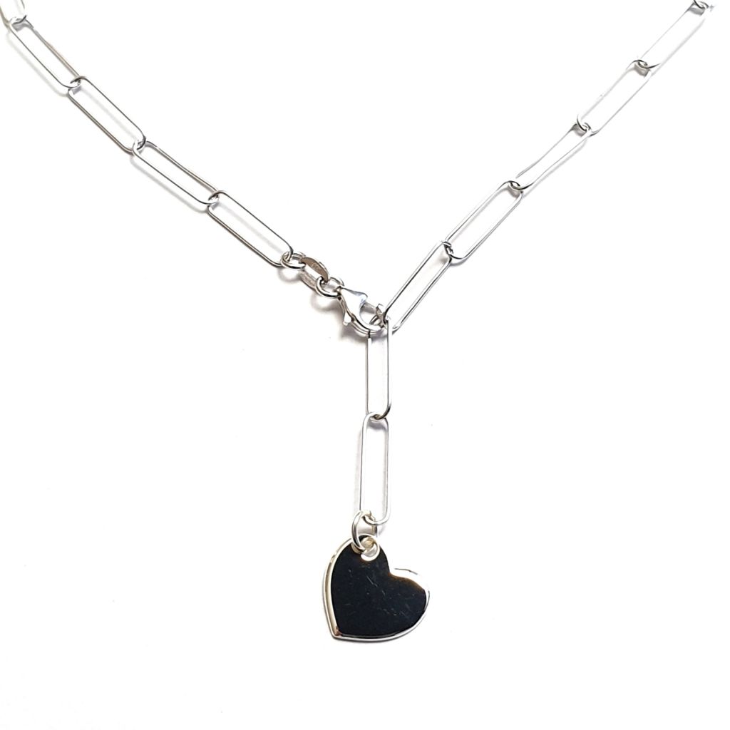 Collier coeur en argent 13 mm gravable monté sur chaine maillons rectangles longueur 45 cm ajustable.