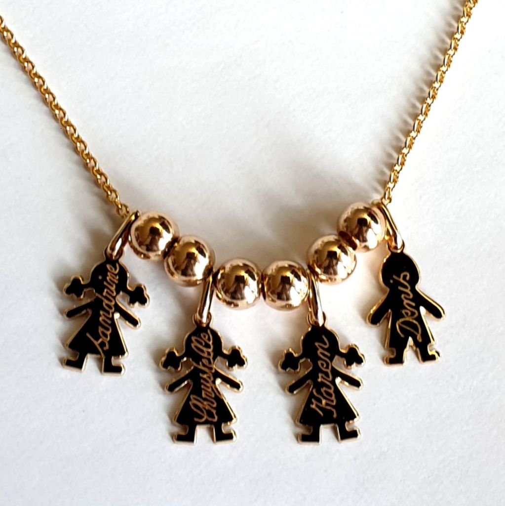 Collier 4 à 6 personnages 15 mm Le prix de départ est pour 4 personnages, possibilité en option d'ajouter des médailles, le prix tient compte des perles séparatrices.