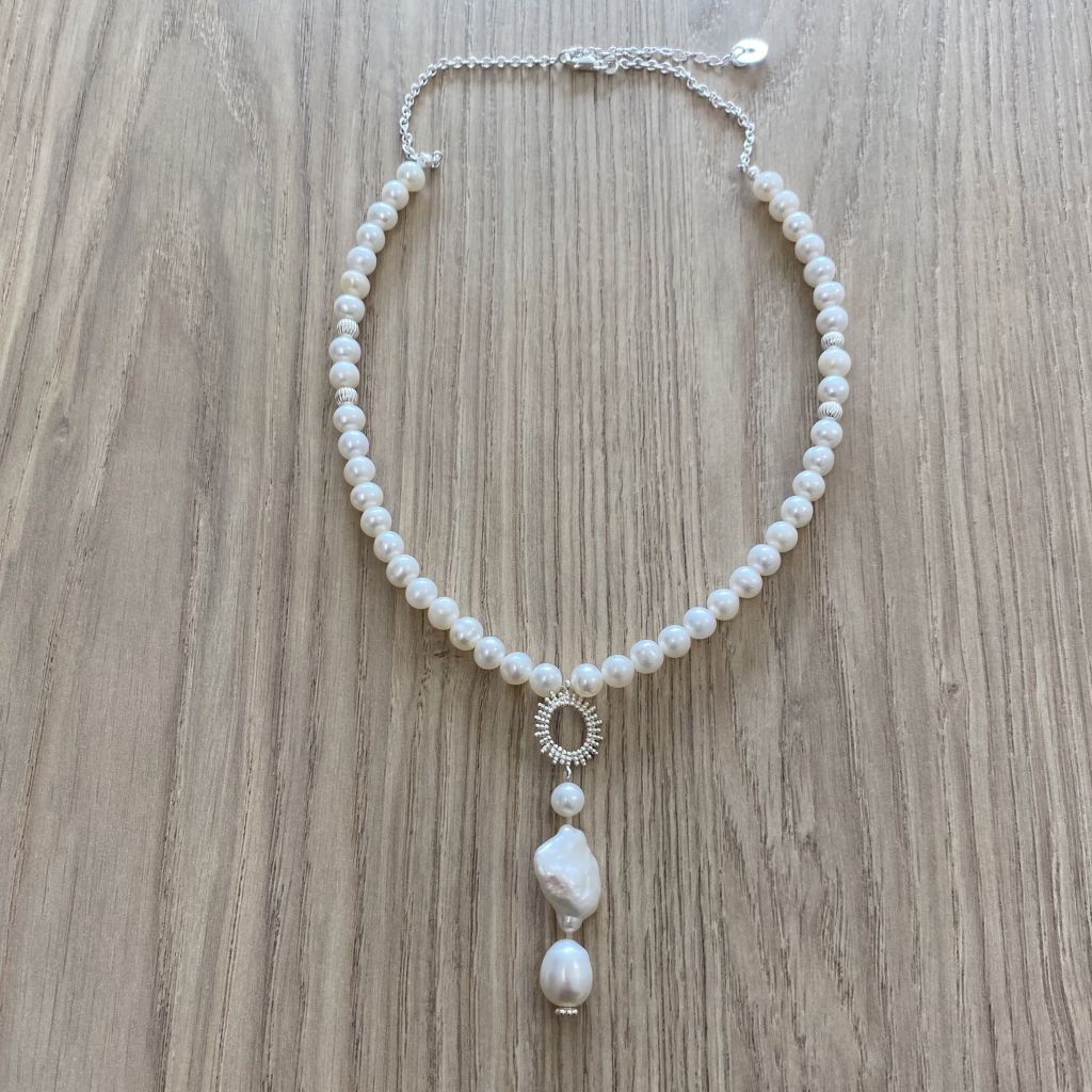 Collier chaine argent et perles de culture 6/7 mm, soleil non hat able.