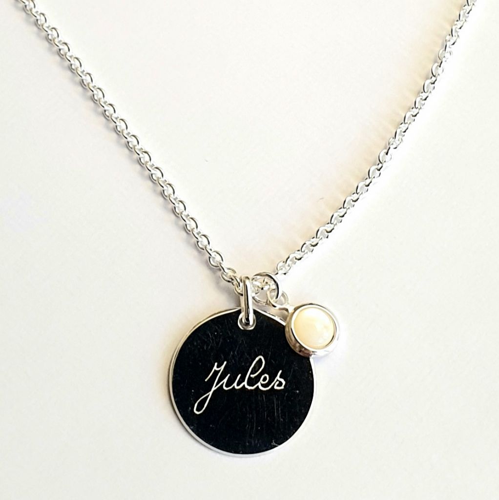 Collier médaille ronde 20 mm en argent, pierre de naissance 8 mm au choix