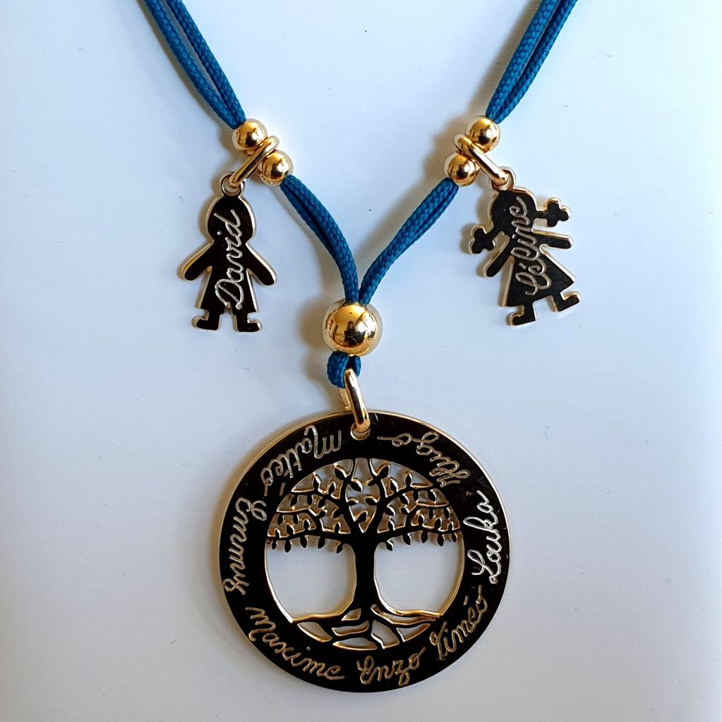 Collier arbre de vie et 2 personnages 15 mm avec perles separatrices et finition perles dans la nuque