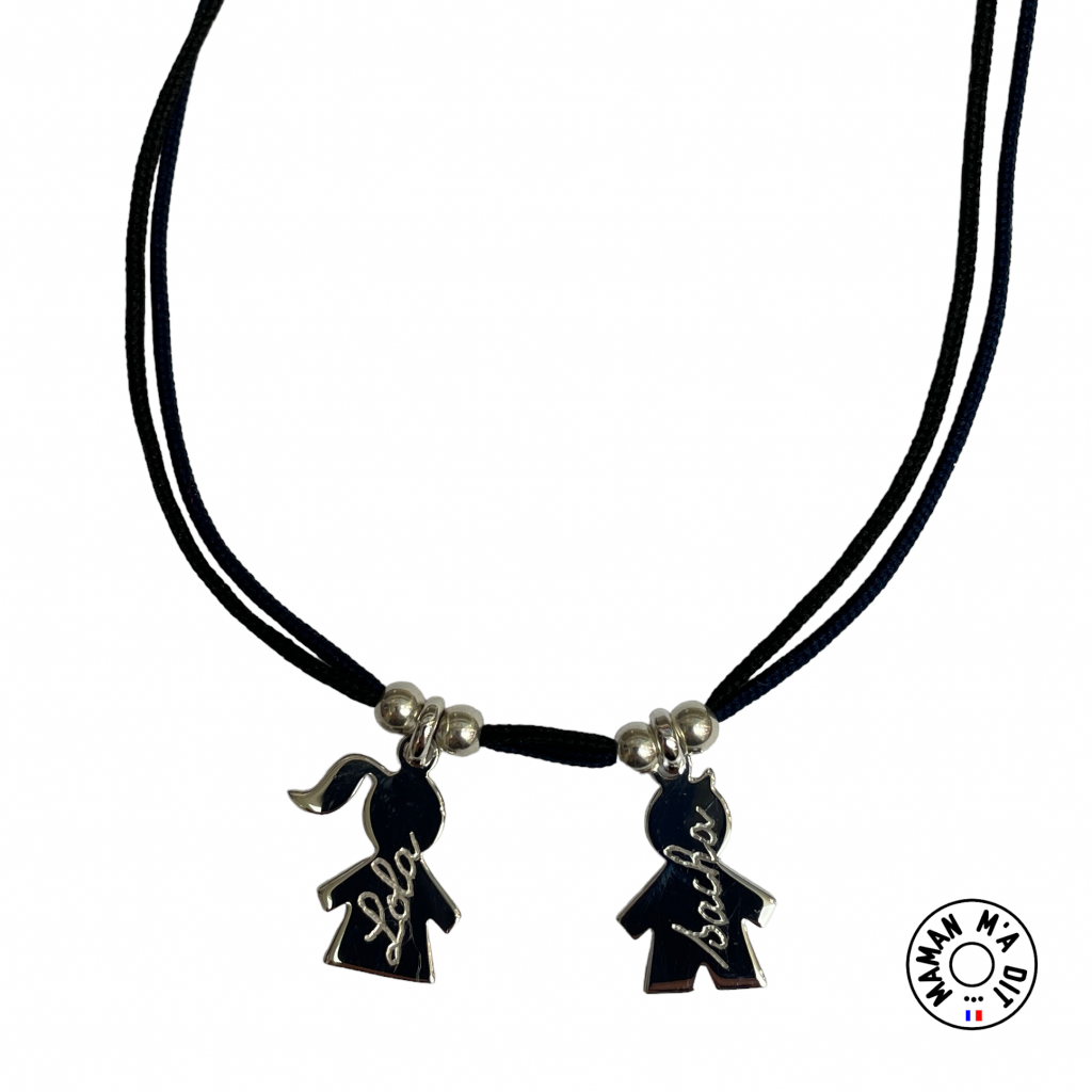 Collier 2 personnages 16 mm avec perles separatrices et finition perles dans la nuque