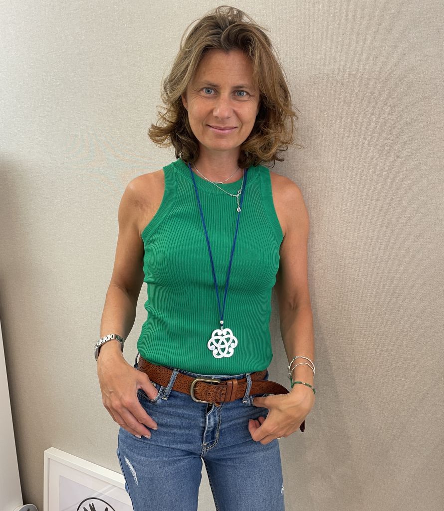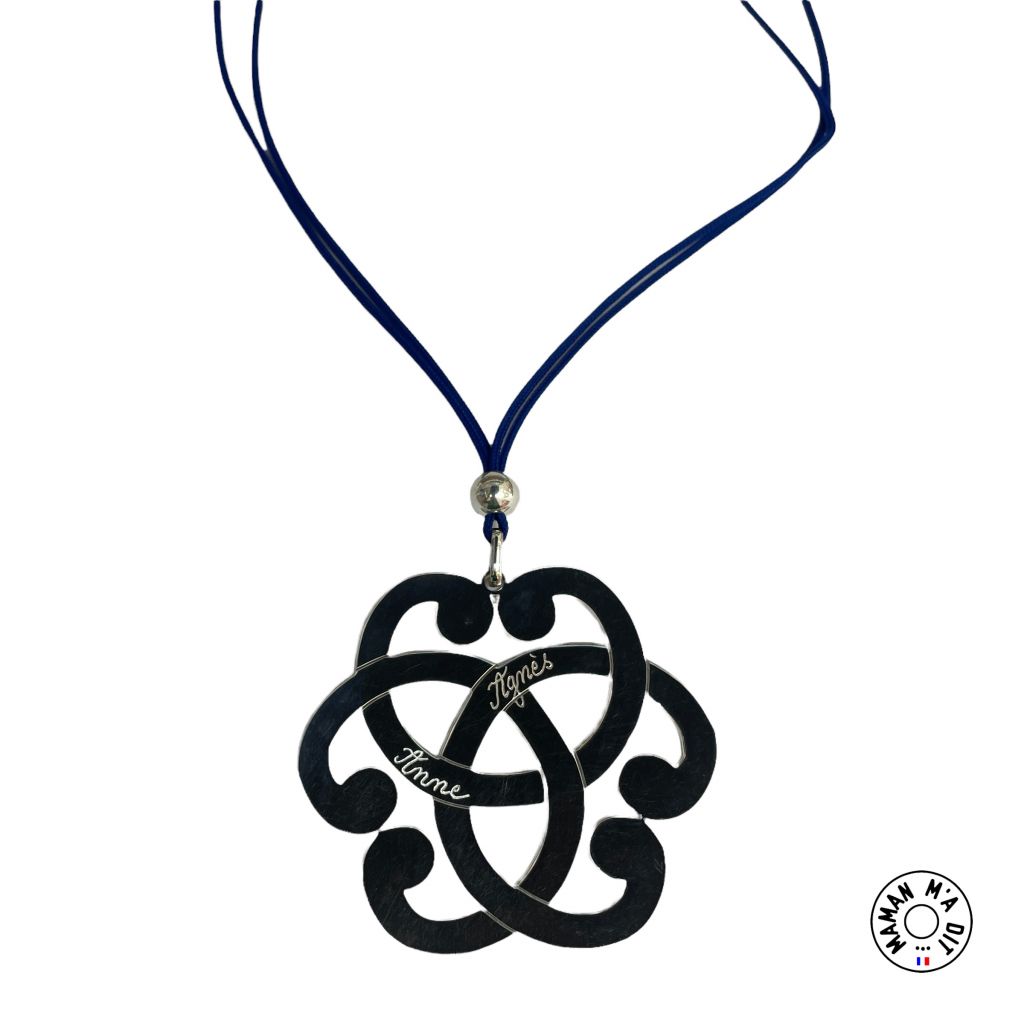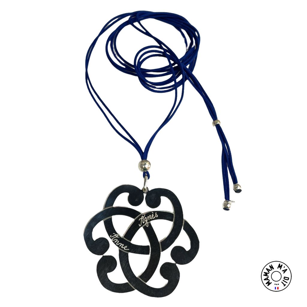 Collier sautoir grosse arabesque 70 mm en argent perle et finition perles dans la nuque