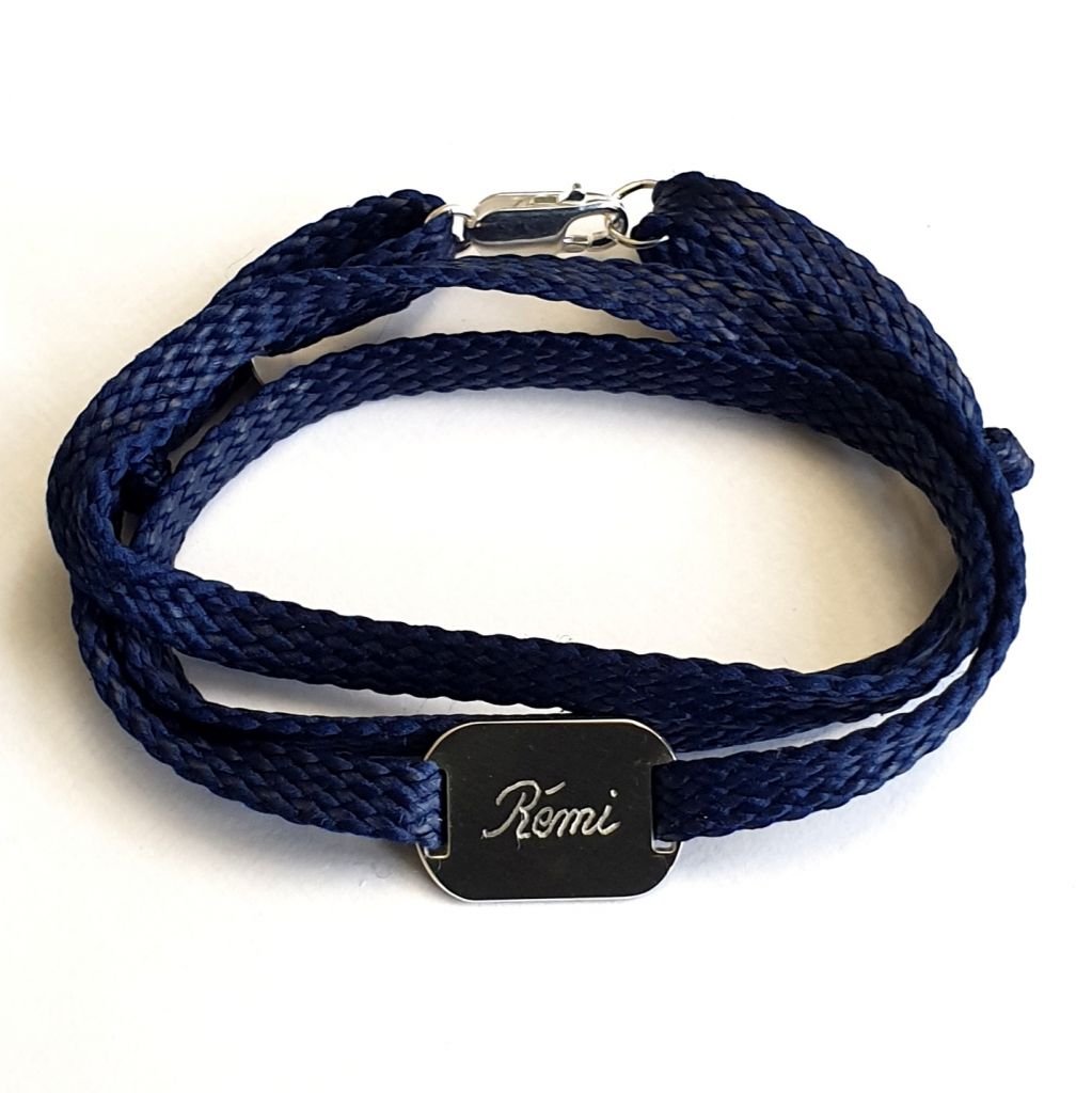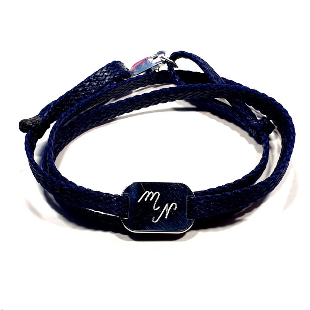 Bracelet gravure au choix 13x20 mm. Lanière en polyester (aspect cuir), très résistante vous pouvez vous laver avec (inutile de l'enlever...) Si vous avez besoin d'enlever souvent votre bracelet, optez pour un fermoir mousqueton qui sera plus facilement manipulable.