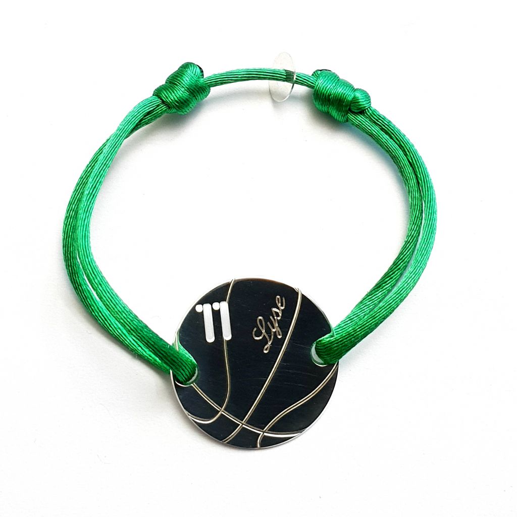 Bracelet ballon de basket, médaille 24 mm numéro au choix sur mesure. Gravure offerte d'un prénom