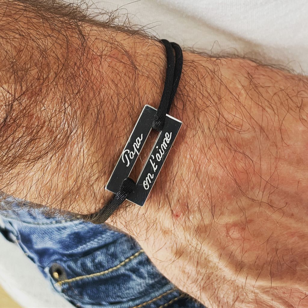 Bracelet plaque rectangulaire évidée 27 mm montée sur cordon.