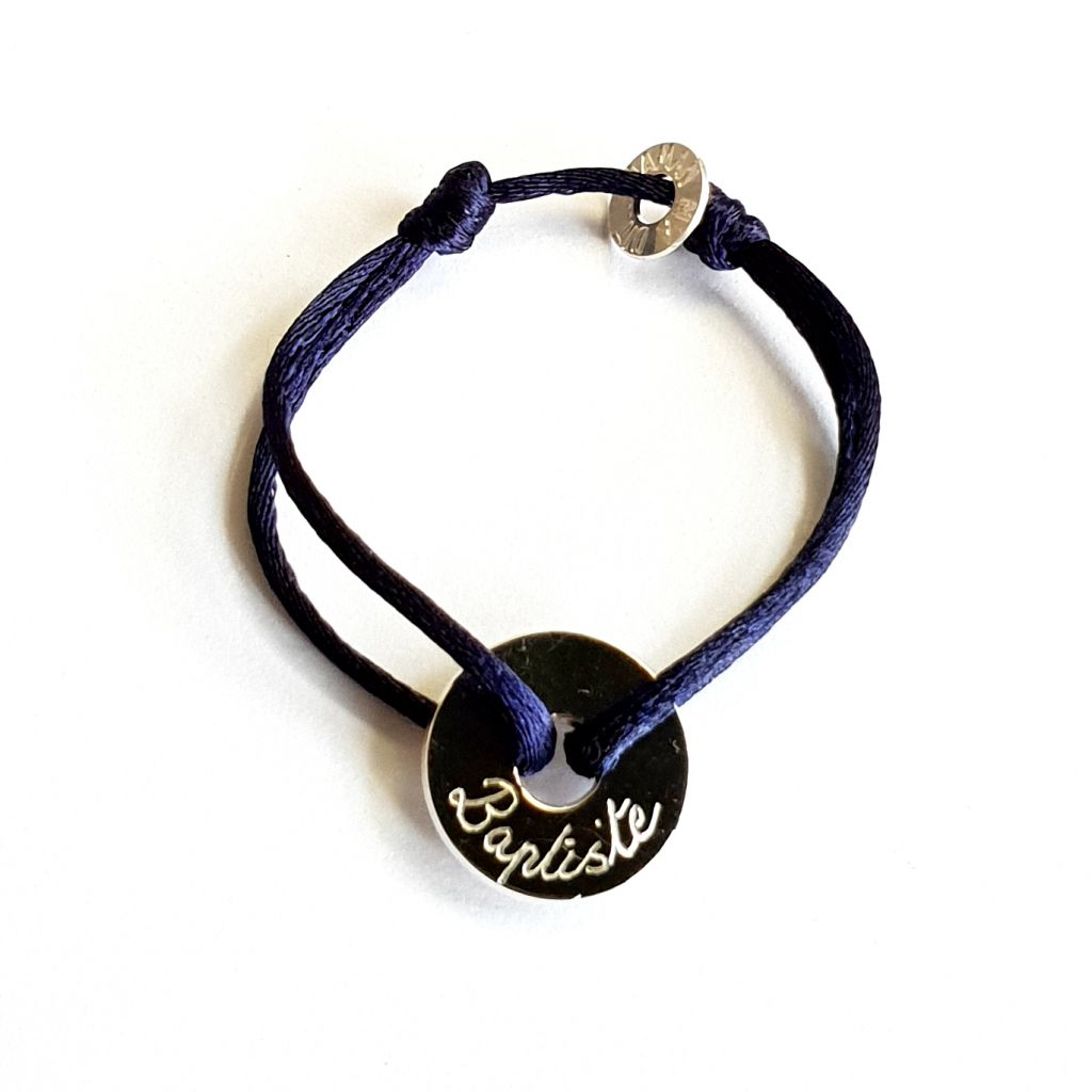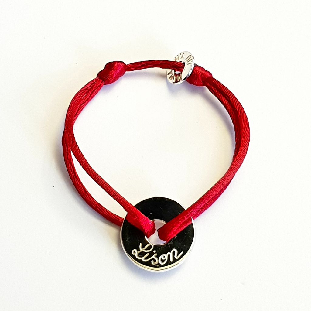 Bracelet cible 15 mm montée sur cordon. Je peux vous graver un prénom au recto et une date au verso. . Possibilité d'ajouter une ou plusieurs mini médailles. Modèle mixe