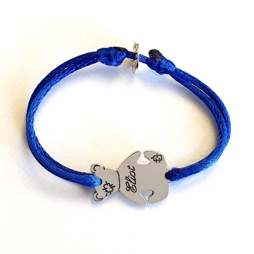 Bracelet ourson 12 x 17 mm. Possibilité de personnaliser celui ci avec d'autres petits motifs que les pansements... je peux en effet en plus du prénom graver un petit coeur, une étoile, une petite voiture, une fleur.... pensez à m'indiquez ce que vous voulez dans les commentaires.