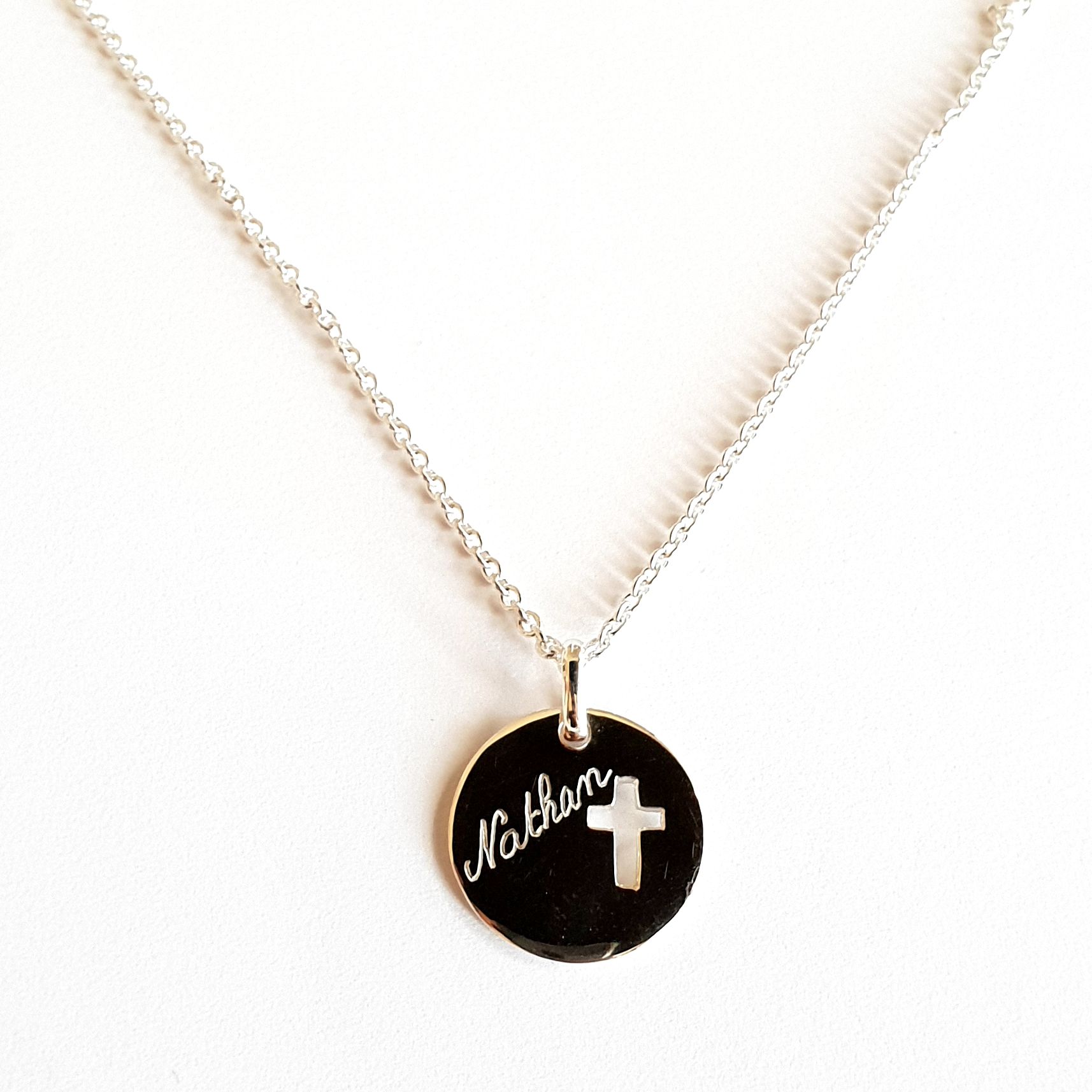 Médaille ronde 20 mm bombée, chaine 40 cm et extension à 45 cm