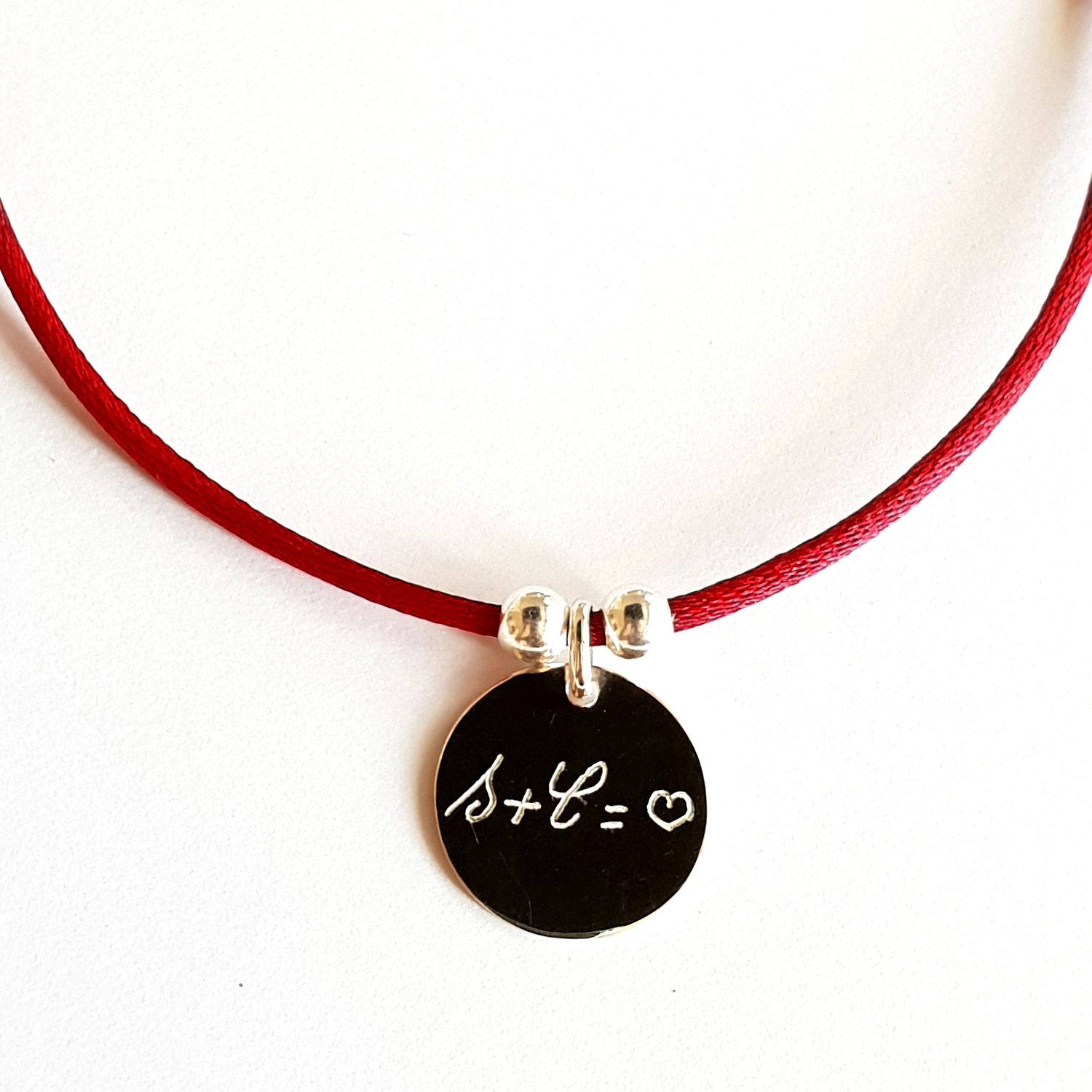 Collier médaille ronde 15 mm montée sur cordon. Je peux vous graver un prénom au recto et une date au verso.