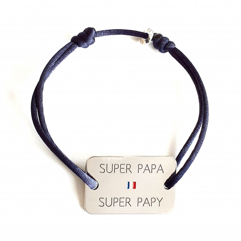 Bracelet plaque 22 x 35 mm, drapeau Français. Texte au choix Gravures noircies en option.