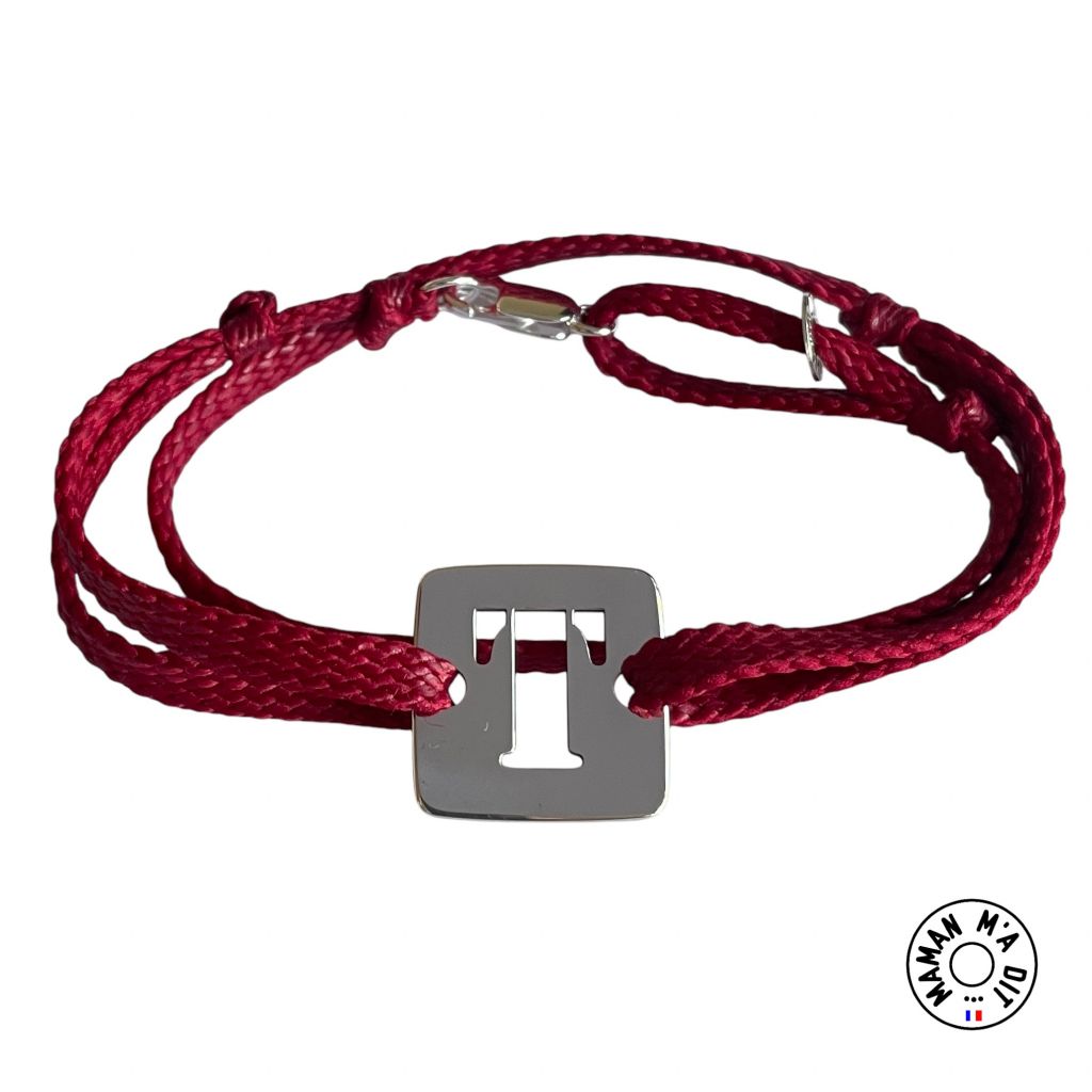 Bracelet plaque carrée 20 mm, lettre au choix Gravures noircies et finition lanière polyester sur 2 ou 3 tours en option